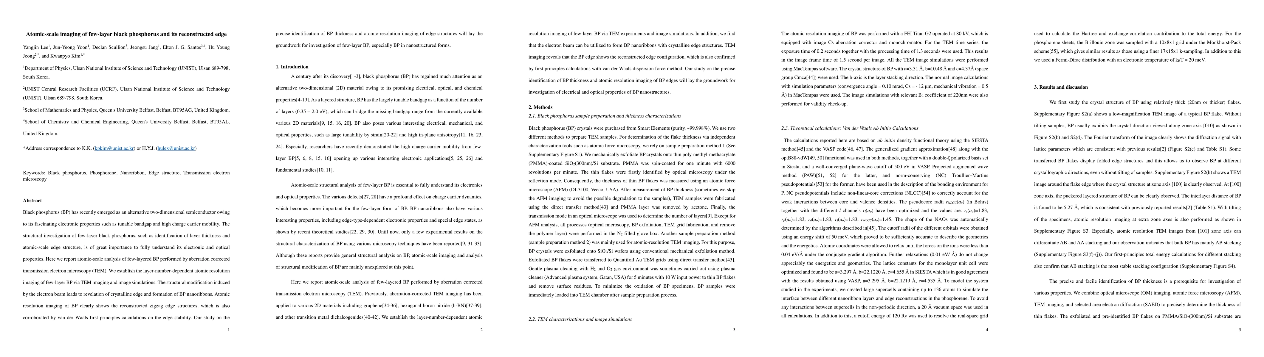 This paper utilizes aberration-corrected TEM to achieve atomic-scale imaging of few-layer black phosphorus, revealing its reconstructed zigzag edge structures and layer thickness. The study also demonstrates structural modification due to electron beam interaction, providing foundational insights for future research on BP nanostructures.