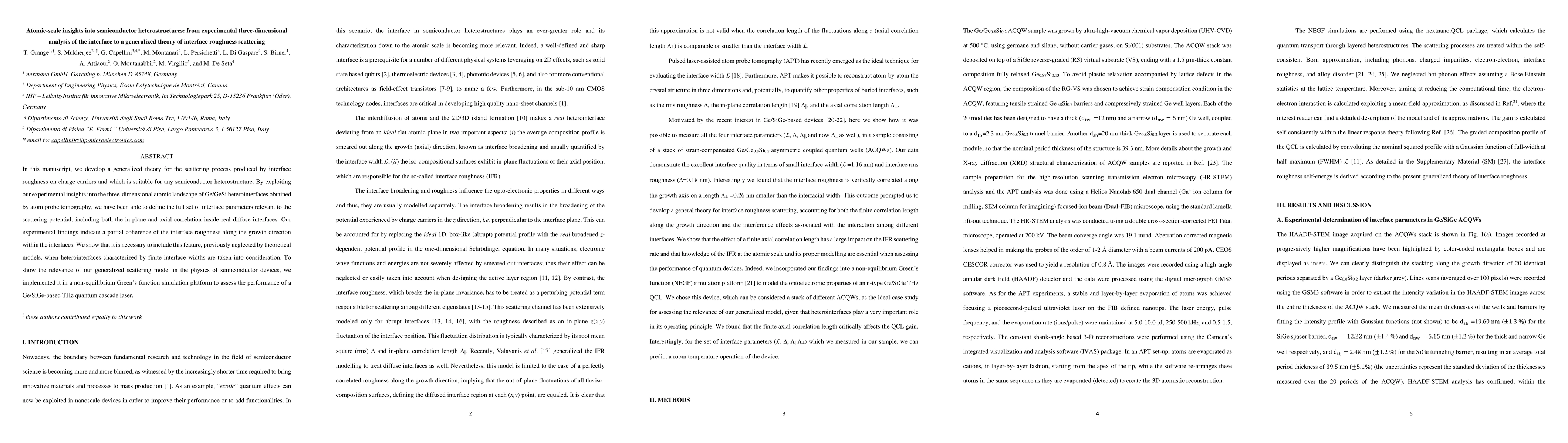 We develop a generalized theory for the scattering process produced by interface roughness on charge carriers and which is suitable for any semiconductor heterostructure. By exploiting our experimental insights into the three-dimensional atomic landscape obtained on Ge/GeSi heterointerfaces obtained by atom probe tomography, we have been able to define the full set of interface parameters relevant to the scattering potential, including both the in-plane and axial correlation inside real diffuse interfaces. Our experimental findings indicate a partial coherence of the interface roughness along the growth direction within the interfaces. We show that it is necessary to include this feature, previously neglected by theoretical models, when heterointerfaces characterized by finite interface widths are taken into consideration.
