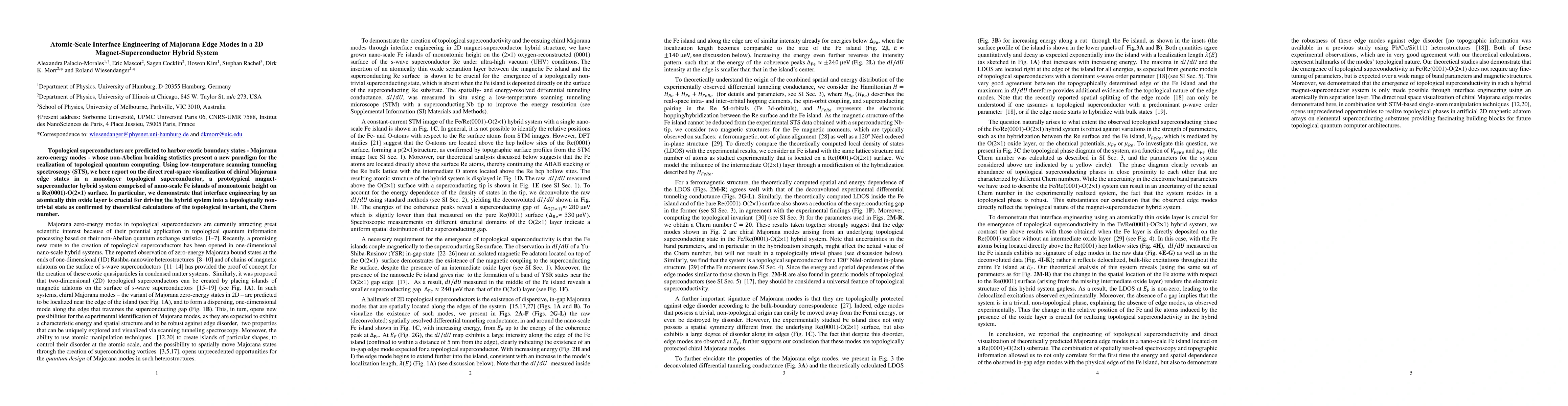 This study reports the direct observation of chiral Majorana edge states using low-temperature scanning tunneling spectroscopy in a 2D magnet-superconductor hybrid system. Interface engineering with an atomically thin oxide layer is shown to be essential for achieving a topologically non-trivial state, confirmed by theoretical calculations of the Chern number.