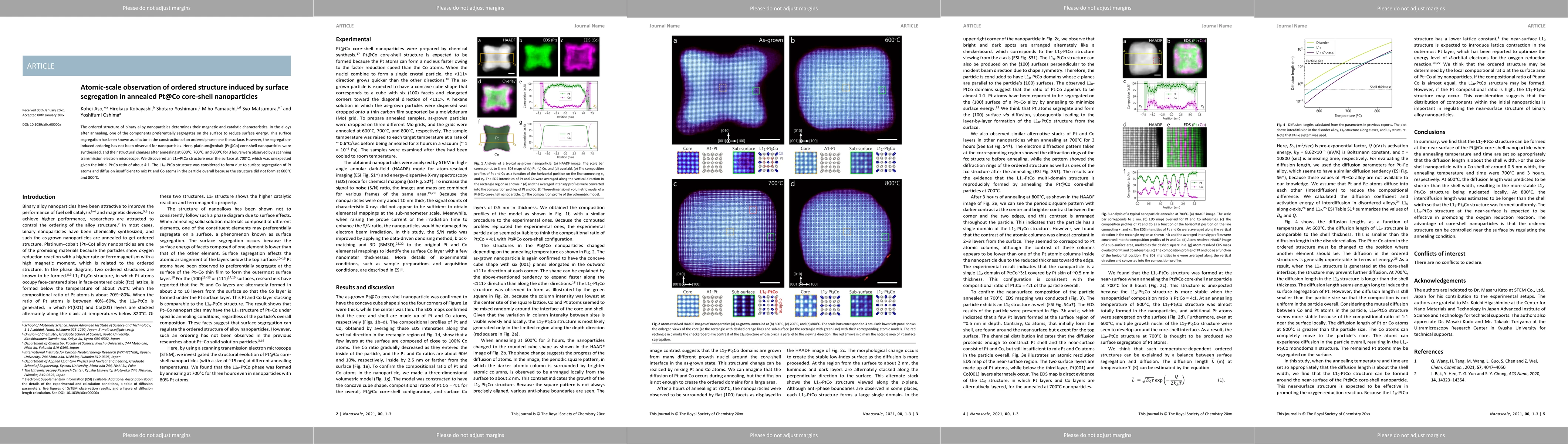 This study reveals the formation of an unexpected L10-PtCo ordered structure near the surface of Pt@Co core-shell nanoparticles after annealing at 700°C, attributed to surface segregation of Pt atoms and limited diffusion, contrasting with the initial Pt:Co ratio of 4:1. This discovery highlights the role of surface segregation in inducing ordered phases in nanoparticles.