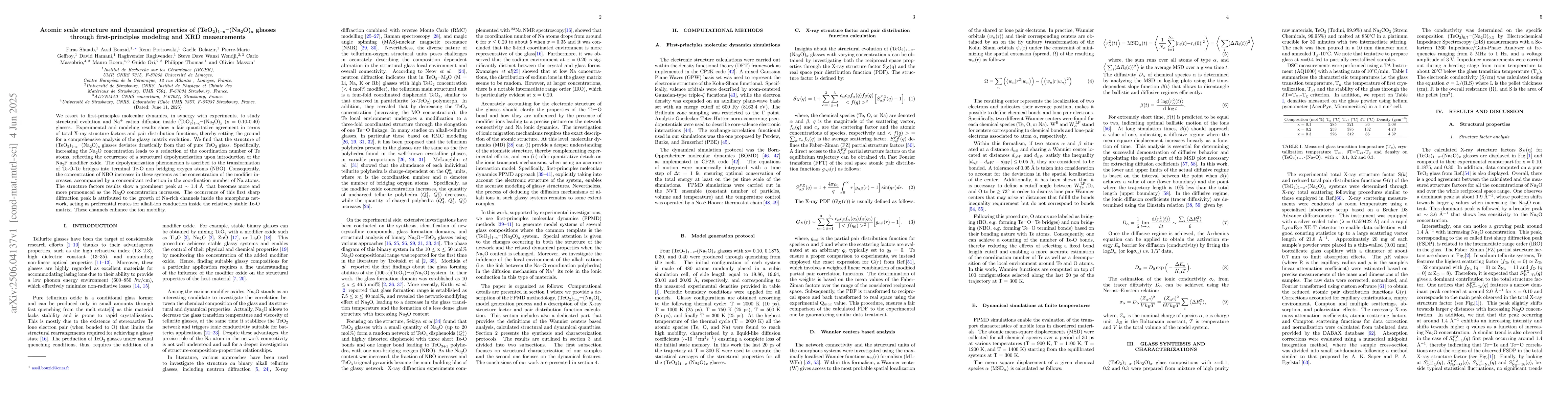 The synergy between first-principles molecular dynamics and XRD measurements to comprehensively analyze the glassy matrix evolution in TeO$_2$-Na$_2$O glasses.