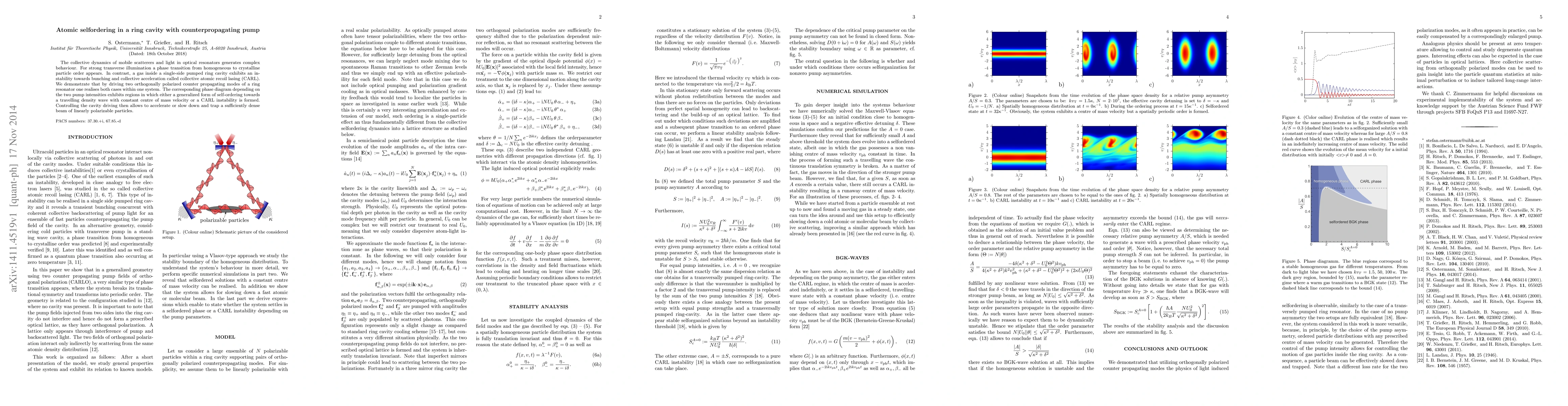 This paper investigates the dynamics of mobile scatterers and light in a ring cavity with counterpropagating pump, demonstrating a phase transition from homogeneous to crystalline order under strong transverse illumination. It shows that driving two orthogonally polarized modes can induce either a generalized self-ordering or a CARL instability, enabling control over particle density wave velocity and trapping.