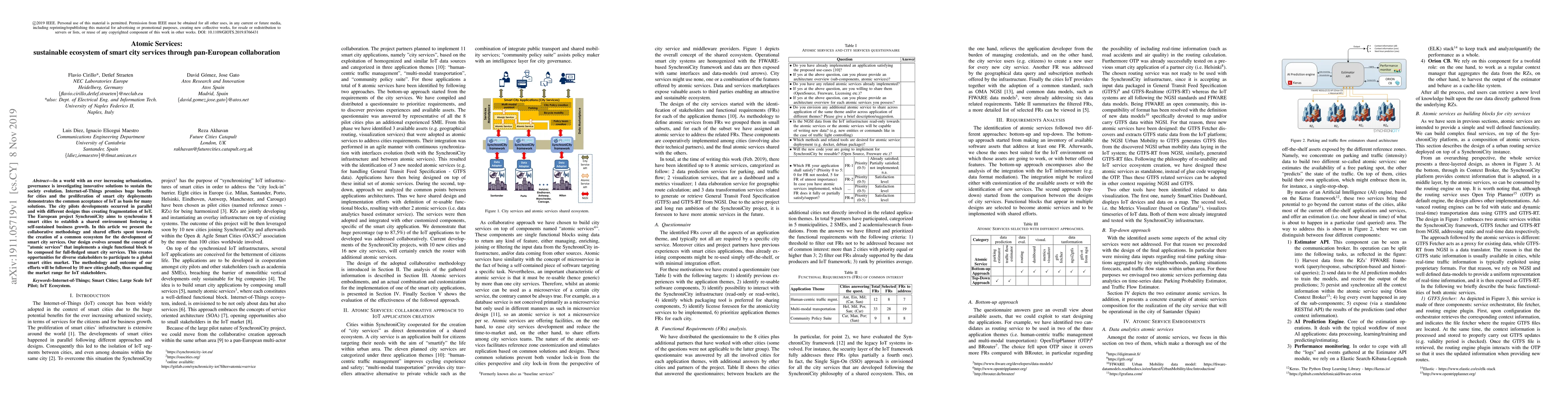 The paper discusses the SynchroniCity project, which aims to create a sustainable ecosystem for smart city services through pan-European collaboration. It introduces "atomic services" to foster a unified approach, enabling diverse stakeholders to contribute to a global smart city market.
