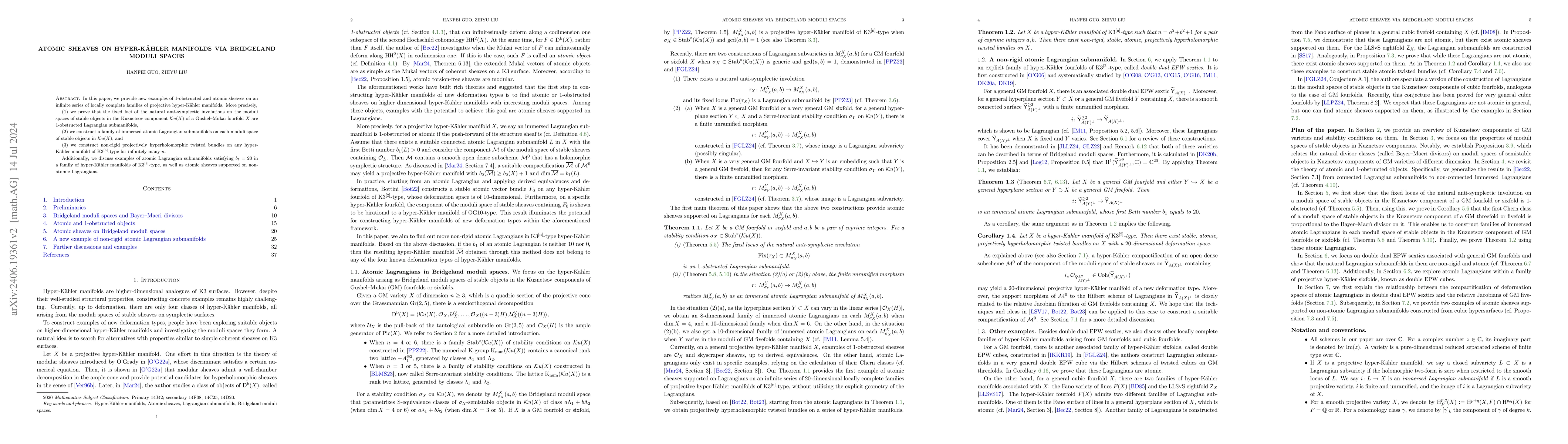 This paper introduces new examples of 1-obstructed and atomic sheaves on projective hyper-Kähler manifolds, specifically showing that fixed loci of anti-symplectic involutions on moduli spaces of stable objects are 1-obstructed Lagrangian submanifolds, and constructs immersed atomic Lagrangian submanifolds on these moduli spaces.