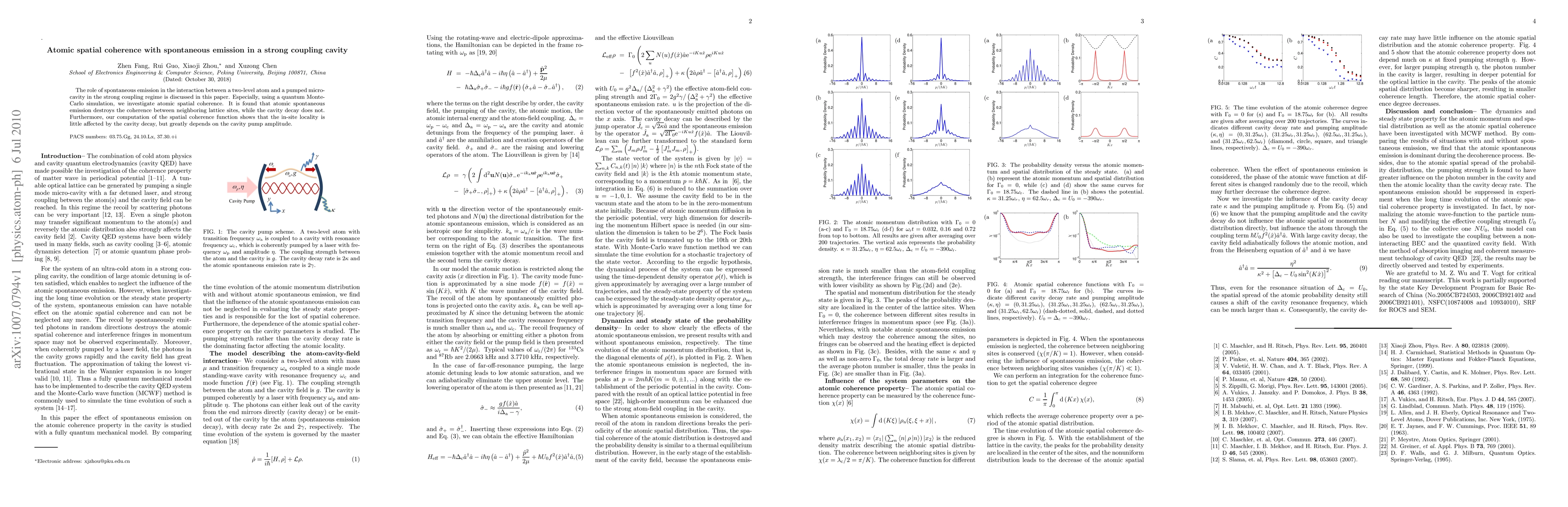 The role of spontaneous emission in the interaction between a two-level atom and a pumped micro-cavity in the strong coupling regime is discussed in this paper. Especially, using a quantum Monte-Carlo simulation, we investigate atomic spatial coherence. It is found that atomic spontaneous emission destroys the coherence between neighboring lattice sites, while the cavity decay does not. Furthermore, our computation of the spatial coherence function shows that the in-site locality is little affected by the cavity decay, but greatly depends on the cavity pump amplitude.