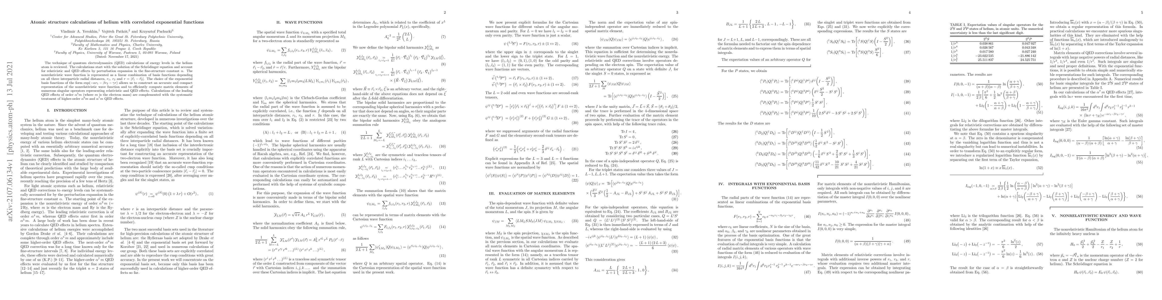 This paper reviews QED calculations for helium atom energy levels using correlated exponential functions. It employs a Schrödinger equation-based approach, incorporating relativistic and QED effects via perturbation expansion, and computes leading and higher-order QED corrections to achieve high accuracy.