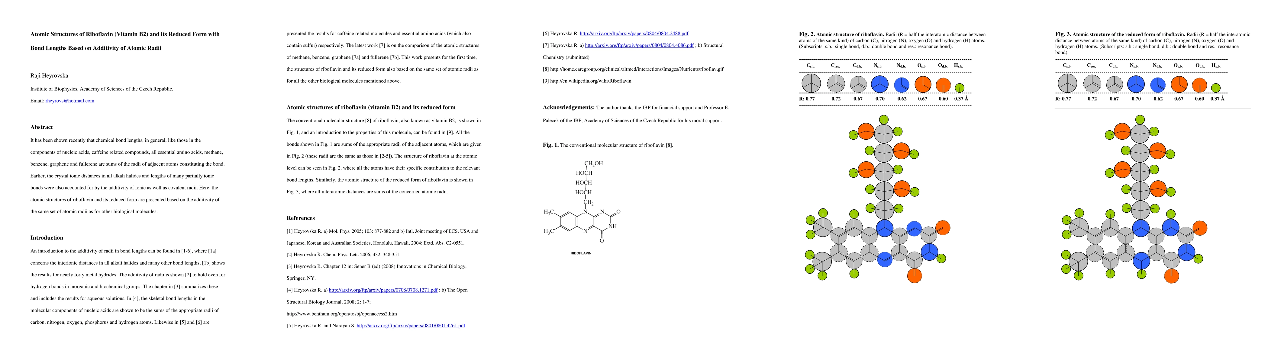 It has been shown recently that chemical bond lengths, in general, like those in the components of nucleic acids, caffeine related compounds, all essential amino acids, methane, benzene, graphene and fullerene are sums of the radii of adjacent atoms constituting the bond. Earlier, the crystal ionic distances in all alkali halides and lengths of many partially ionic bonds were also accounted for by the additivity of ionic as well as covalent radii. Here, the atomic structures of riboflavin and its reduced form are presented based on the additivity of the same set of atomic radii as for other biological molecules.