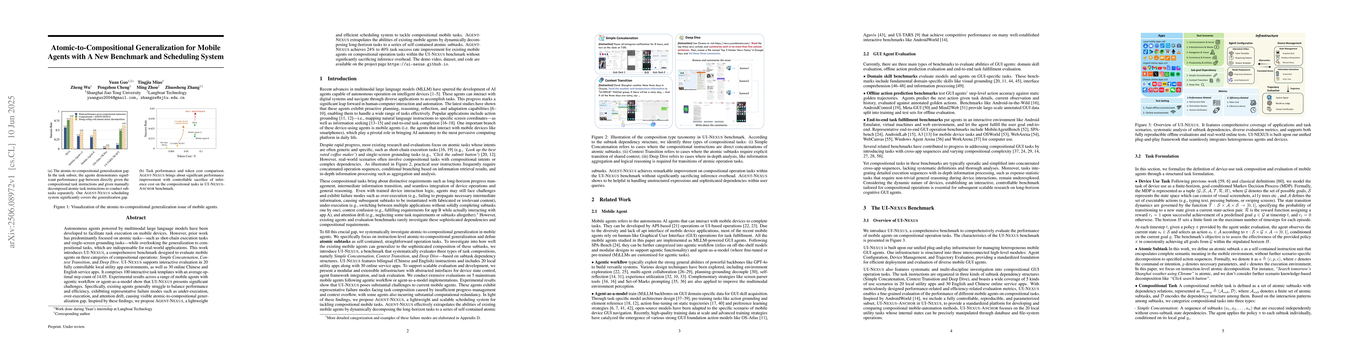 Researchers introduce a comprehensive benchmark (UI-NEXUS) to evaluate mobile agents on compositional tasks, highlighting significant challenges in atomic-to-compositional generalization, and propose an efficient scheduling system (AGENT-NEXUS) to improve task success rates by up to 40%.