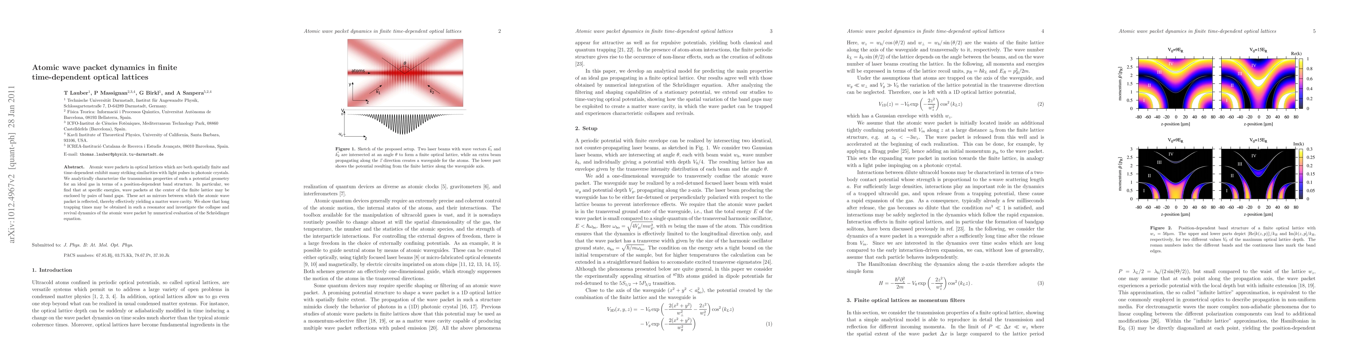 This paper analytically characterizes the transmission properties of atomic wave packets in finite, time-dependent optical lattices, revealing that specific energies can trap wave packets within band gaps, creating a matter wave cavity. Numerical simulations demonstrate the potential for long-term trapping and explore the dynamics of wave packet collapse and revival.