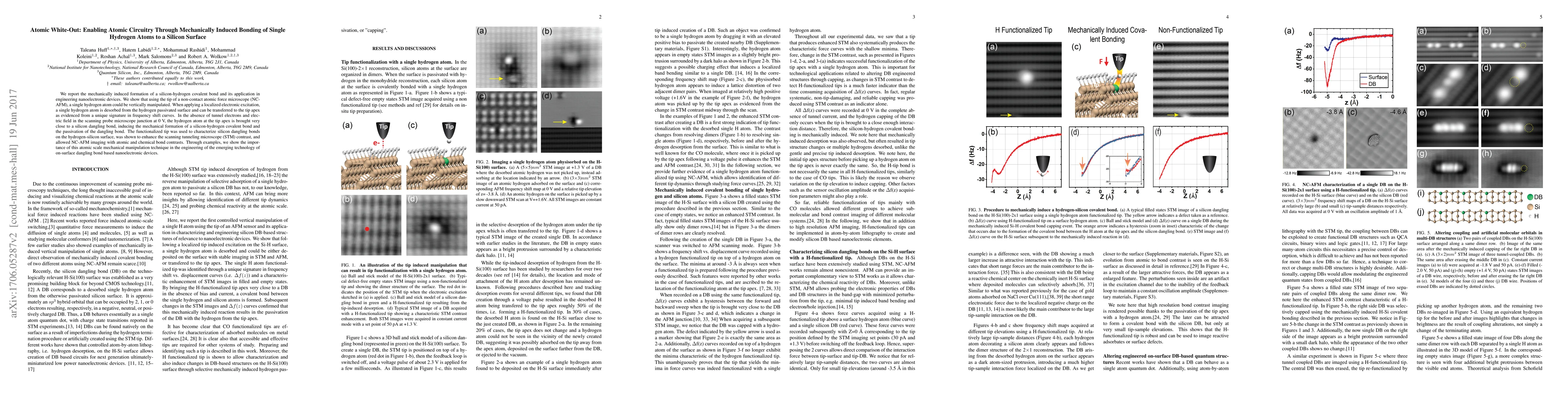 We report the mechanically induced formation of a silicon-hydrogen covalent bond and its application in engineering nanoelectronic devices. We show that using the tip of a non-contact atomic force microscope (NC-AFM), a single hydrogen atom could be vertically manipulated. When applying a localized electronic excitation, a single hydrogen atom is desorbed from the hydrogen passivated surface and can be transferred to the tip apex as evidenced from a unique signature in frequency shift curves. In the absence of tunnel electrons and electric field in the scanning probe microscope junction at 0 V, the hydrogen atom at the tip apex is brought very close to a silicon dangling bond, inducing the mechanical formation of a silicon-hydrogen covalent bond and the passivation of the dangling bond. The functionalized tip was used to characterize silicon dangling bonds on the hydrogen-silicon surface, was shown to enhance the scanning tunneling microscope (STM) contrast, and allowed NC-AFM imaging with atomic and chemical bond contrasts. Through examples, we show the importance of this atomic scale mechanical manipulation technique in the engineering of the emerging technology of on-surface dangling bond based nanoelectronic devices.