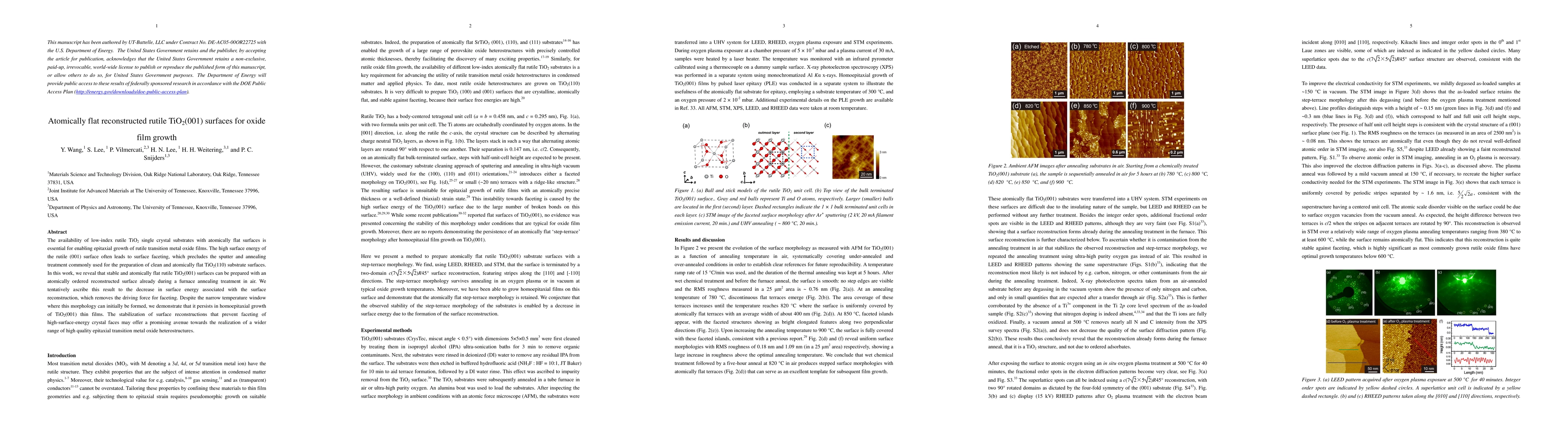 This research demonstrates the preparation of atomically flat rutile TiO2(001) surfaces through a reconstructed morphology during furnace annealing, which stabilizes against faceting. The persistence of this reconstruction in TiO2 thin film growth suggests potential for developing high-quality epitaxial transition metal oxide heterostructures.