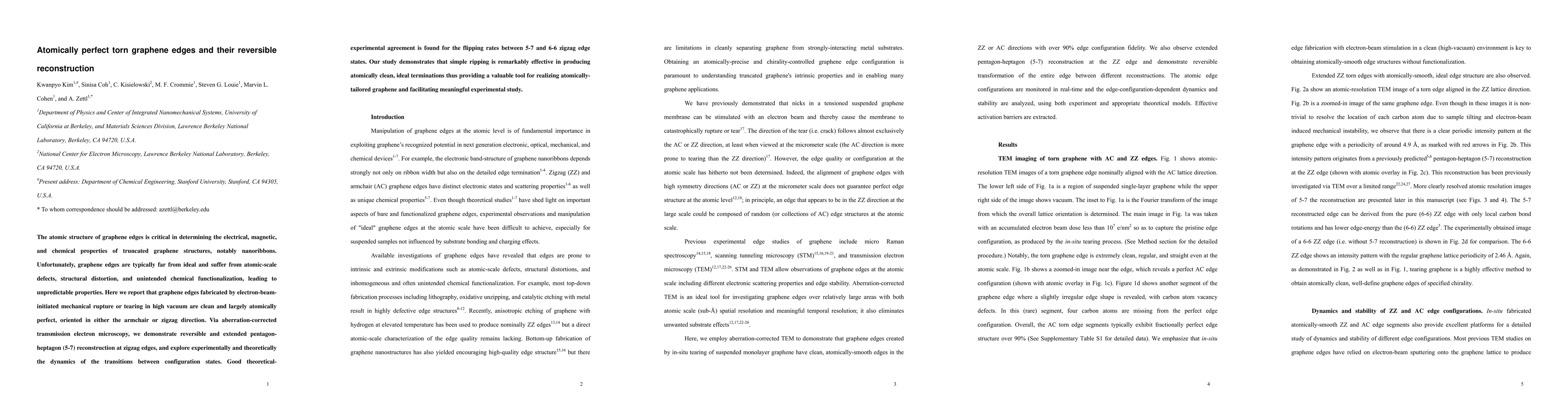 This paper reports that graphene edges created by electron-beam-initiated mechanical rupture are atomically perfect, either armchair or zigzag, and demonstrates reversible reconstruction at zigzag edges. The study provides a valuable method for producing ideal graphene terminations, aiding in the realization of atomically-tailored graphene structures.