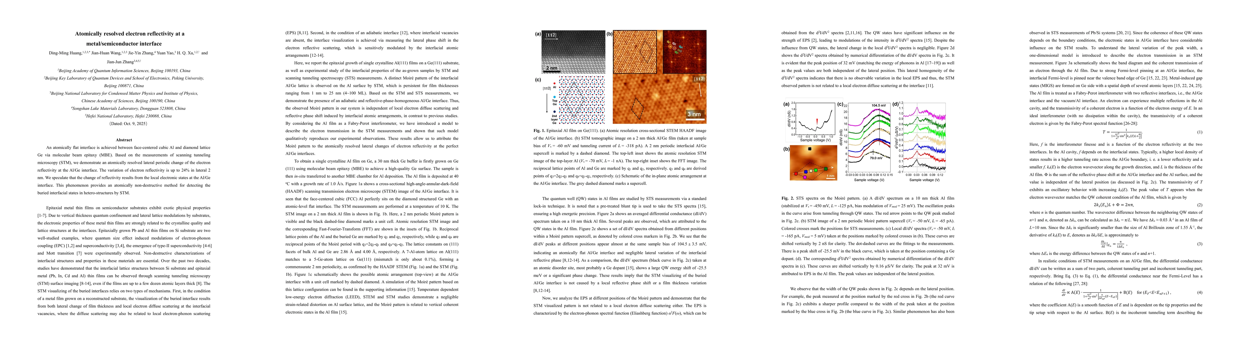 The study employs molecular beam epitaxy (MBE) to create an atomically flat Al/Ge interface, combined with scanning tunneling microscopy (STM) to measure electron reflectivity variations at the interface.