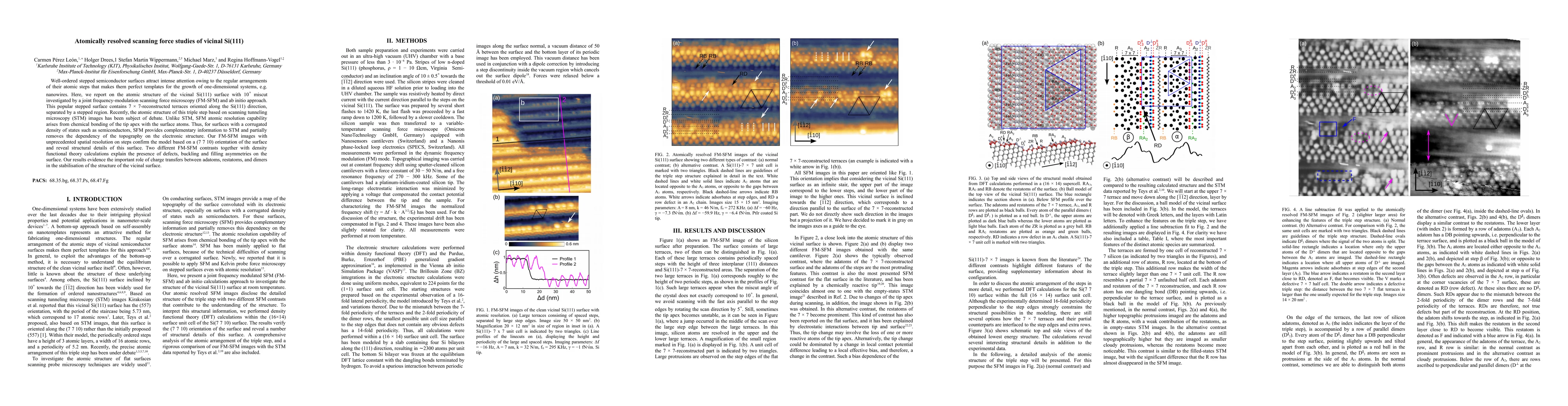 This study uses atomically resolved frequency-modulation scanning force microscopy (FM-SFM) and ab initio calculations to investigate the atomic structure of vicinal Si(111) surfaces, resolving debates on the (7 x 7) reconstruction and revealing structural details, including defects and buckling, emphasizing the role of charge transfers in stabilizing the surface.