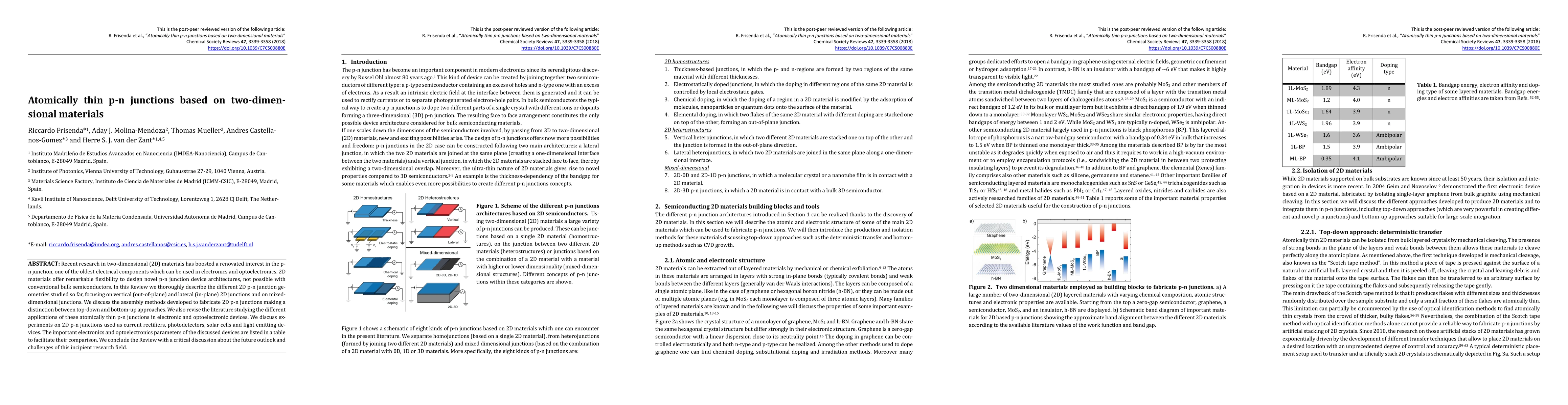 This paper reviews recent advancements in atomically thin p-n junctions based on two-dimensional materials, detailing various junction geometries, fabrication methods, and applications in electronics and optoelectronics, while also discussing future challenges.