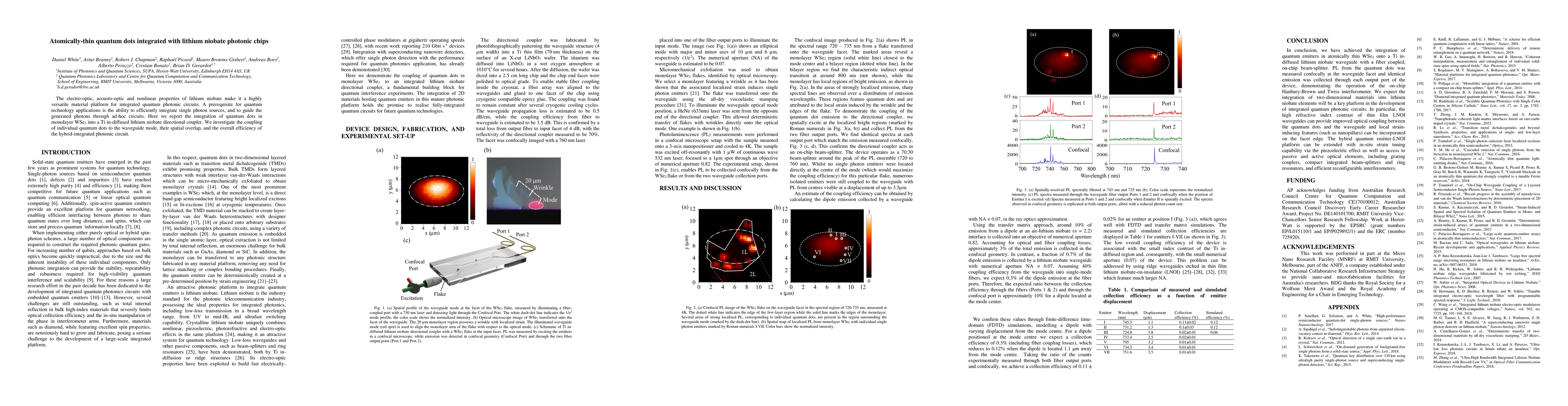 This research reports the integration of monolayer WSe2 quantum dots into lithium niobate photonic chips, focusing on the coupling efficiency and spatial overlap of quantum dots with waveguide modes in a Ti in-diffused directional coupler for quantum photonic circuits.