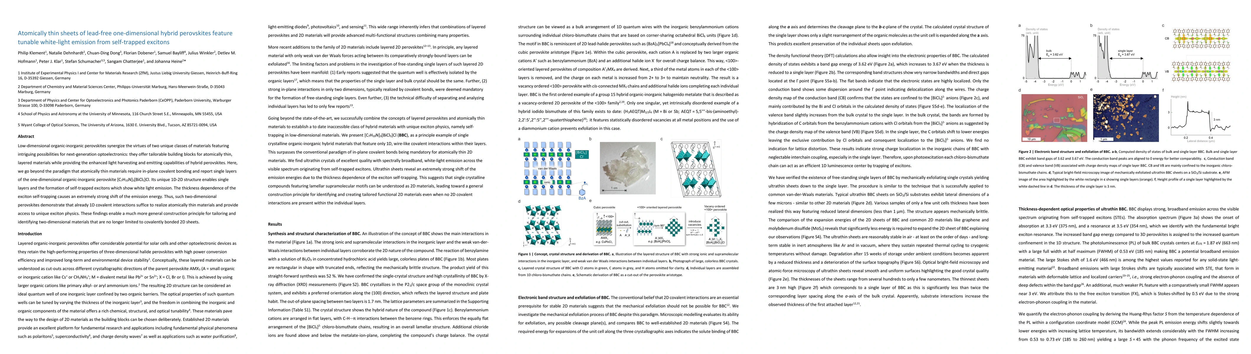 Researchers create atomically thin sheets of lead-free perovskites that emit white light through self-trapped excitons, challenging traditional assumptions about material structure.