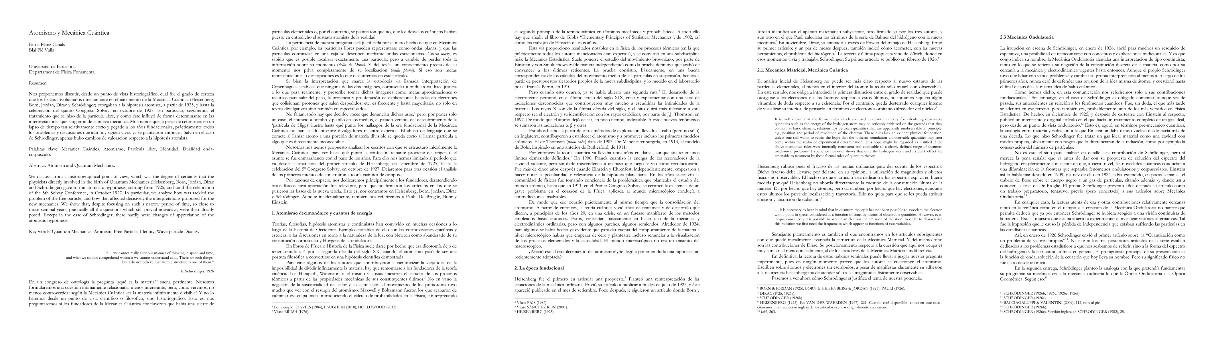 Physicists like Heisenberg, Born, Jordan, Dirac, and Schr"odinger discussed the atomistic hypothesis in Quantum Mechanics from 1925 to 1927, raising questions that still persist today. Most physicists accepted the idea of atoms, except for Schr"odinger.