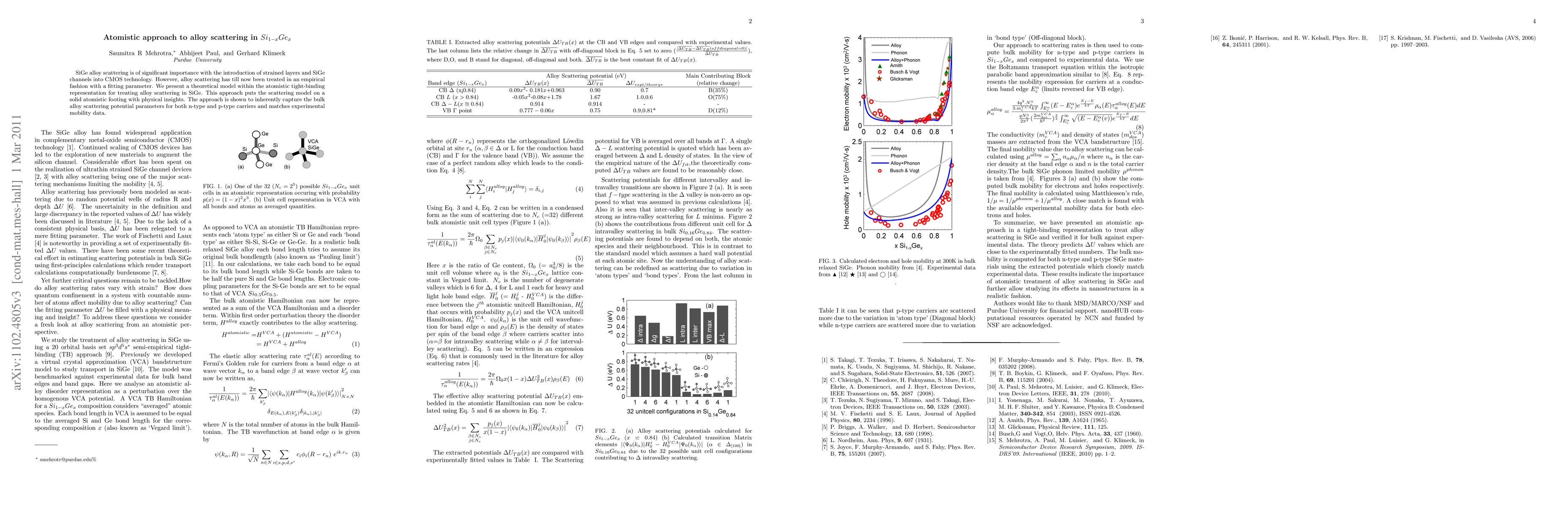 SiGe alloy scattering is of significant importance with the introduction of strained layers and SiGe channels into CMOS technology. However, alloy scattering has till now been treated in an empirical fashion with a fitting parameter. We present a theoretical model within the atomistic tight-binding representation for treating alloy scattering in SiGe. This approach puts the scattering model on a solid atomistic footing with physical insights. The approach is shown to inherently capture the bulk alloy scattering potential parameters for both n-type and p-type carriers and matches experimental mobility data.