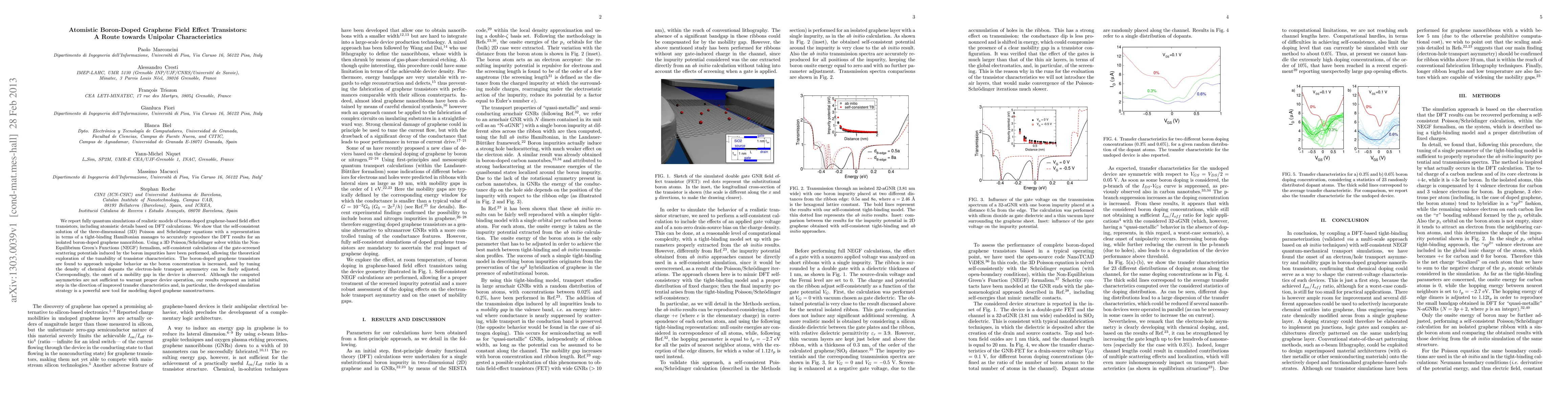 This paper uses quantum simulations to explore boron-doped graphene-based field effect transistors, demonstrating that increased boron concentration leads to unipolar behavior and electron-hole transport asymmetry, with the developed simulation method offering a valuable tool for modeling doped graphene nanostructures.