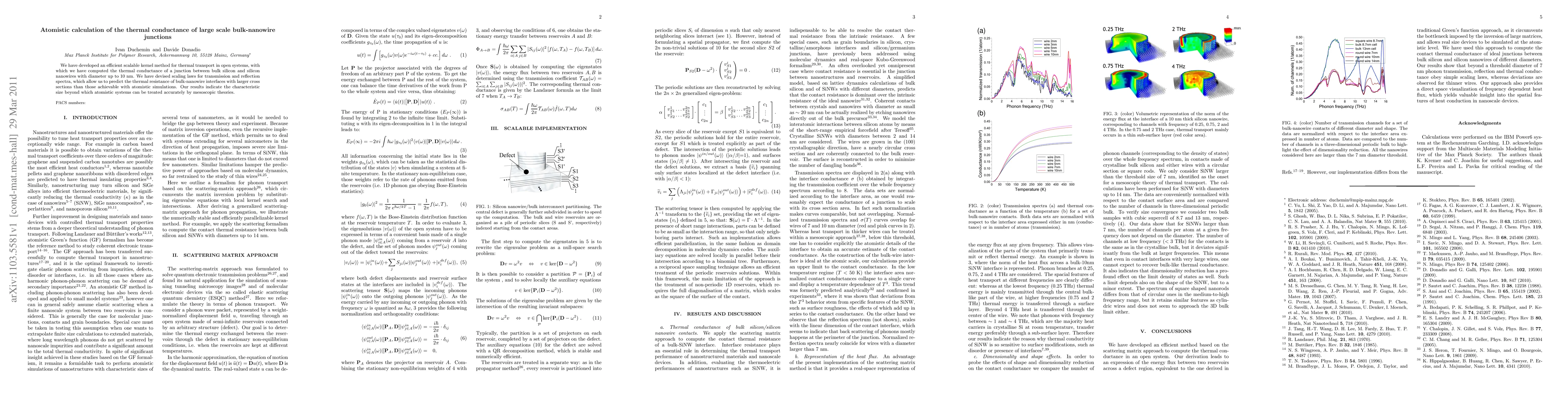 This paper presents an efficient scalable kernel method for calculating thermal conductance in bulk-nanowire junctions, demonstrating its application to silicon nanowires up to 10 nm in diameter. The study also develops scaling laws for predicting thermal resistance in larger junctions, establishing a size threshold for transitioning from atomistic to mesoscopic theories.