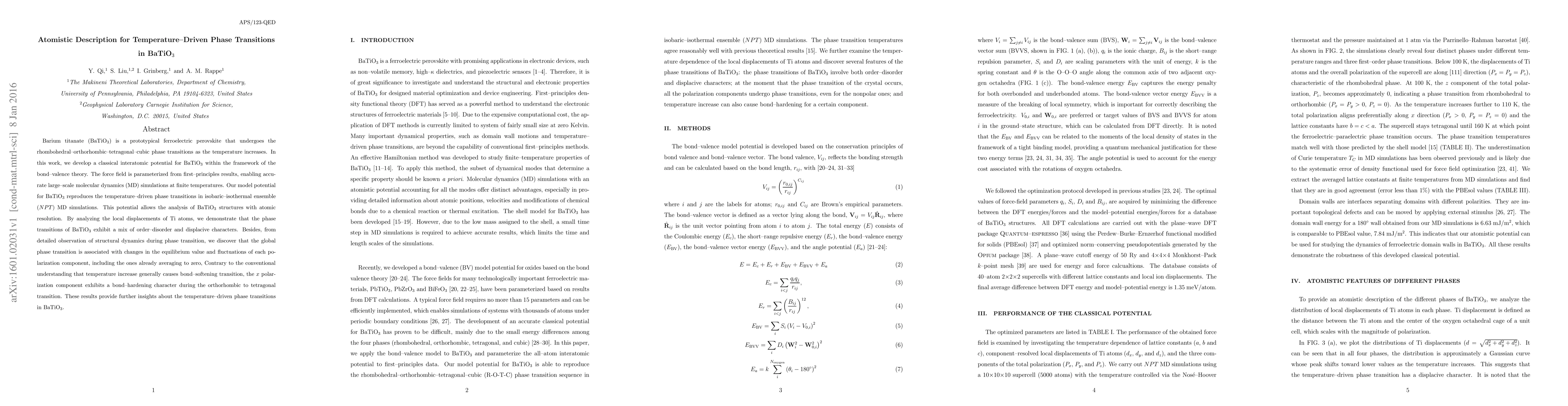 A combination of molecular dynamics simulations and density functional theory calculations were used to study the phase transitions in BaTiO3.