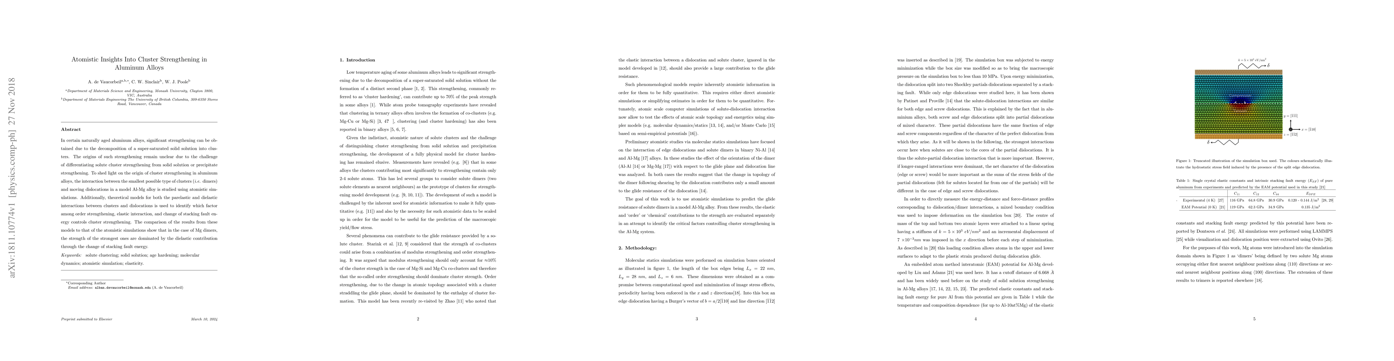 This paper investigates the strengthening mechanisms in naturally aged aluminum alloys due to the formation of solute clusters, using atomistic simulations and theoretical models. The study reveals that Mg dimers' strengthening is primarily governed by the dielastic interaction, which alters the stacking fault energy.