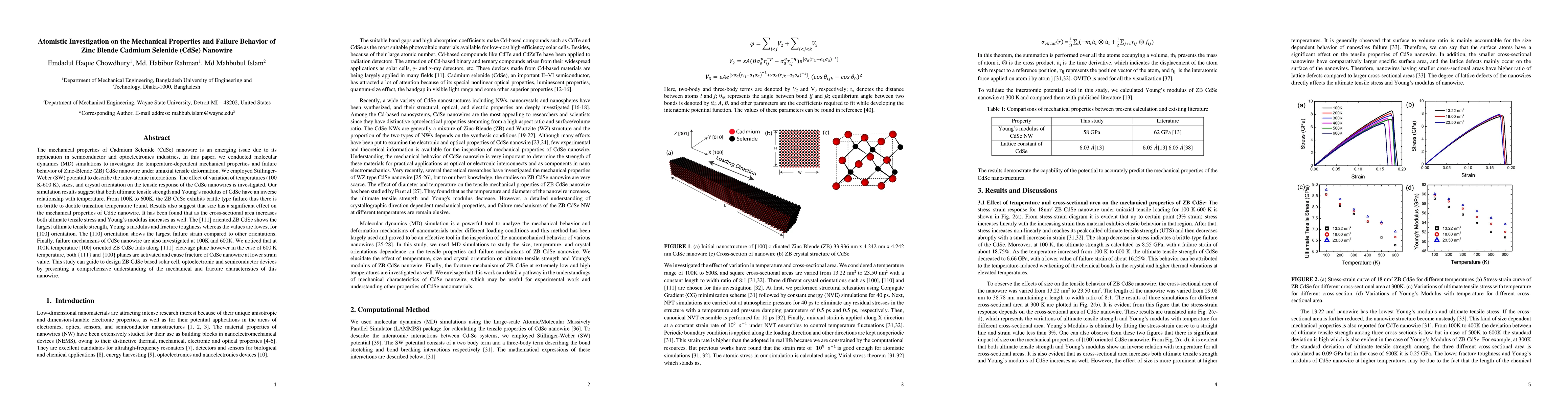 This paper uses molecular dynamics simulations to explore the temperature-dependent mechanical properties and failure behavior of Zinc-Blende CdSe nanowires under tensile stress. Results show that both tensile strength and Young's modulus decrease with increasing temperature, with no brittle-to-ductile transition, and that nanowire size and crystal orientation significantly influence mechanical responses.