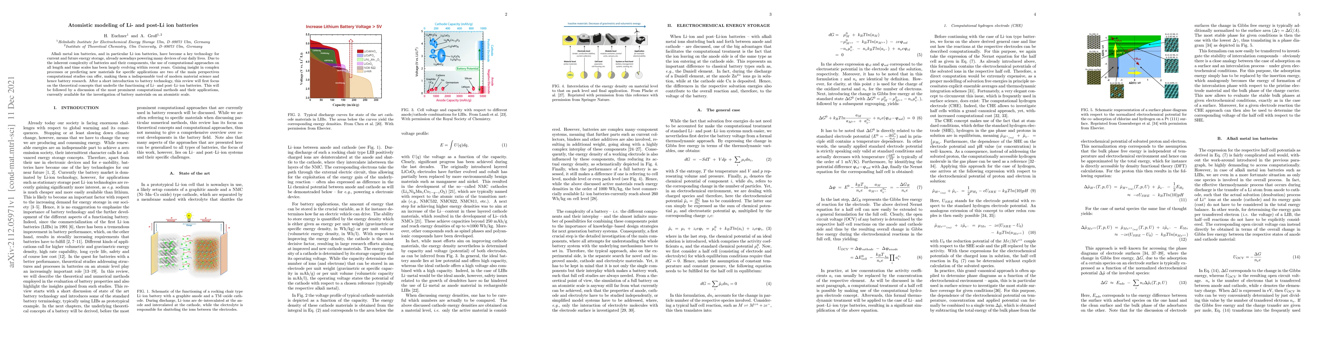 This paper reviews theoretical concepts and computational methods for modeling Li-ion and post-Li-ion batteries, emphasizing their role in understanding complex processes and predicting new materials for energy storage applications. The focus is on atomistic modeling approaches in modern material science.