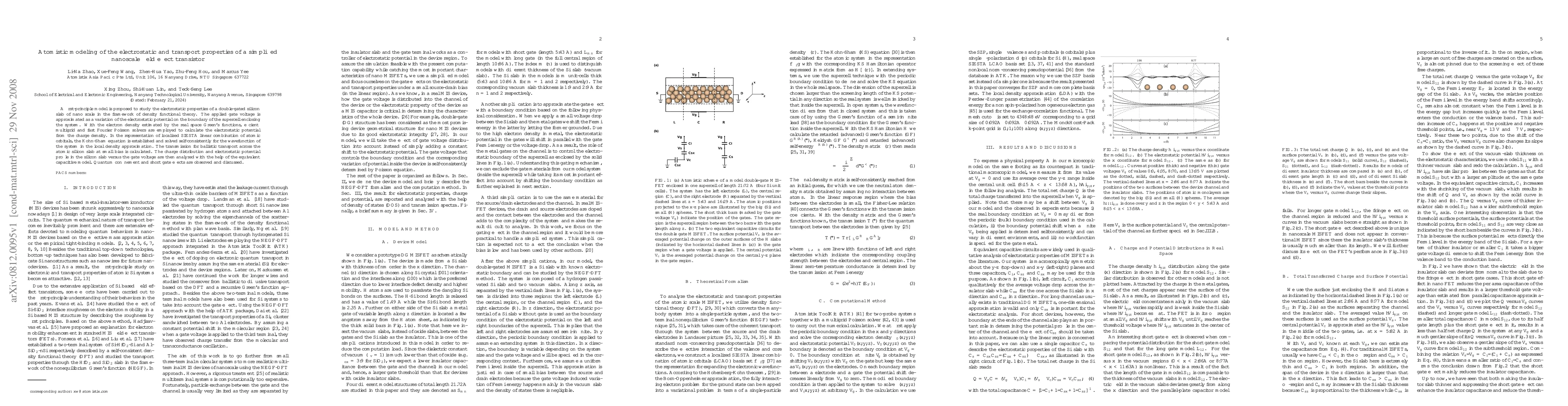A first-principle model is proposed to study the electrostatic properties of a double-gated silicon slab of nano scale in the framework of density functional theory. The applied gate voltage is approximated as a variation of the electrostatic potential on the boundary of the supercell enclosing the system. With the electron density estimated by the real space Green's functions, efficient multigrid and fast Fourier Poisson solvers are employed to calculate the electrostatic potential from the charge density. In the representation of localized SIESTA linear combination of atomic orbitals, the Kohn-Sham equation is established and solved self-consistently for the wavefunction of the system in the local density approximation. The transmission for ballistic transport across the atomic silicon slab at small bias is calculated. The charge distribution and electrostatic potential profile in the silicon slab versus the gate voltage are then analyzed with the help of the equivalent capacitive model. Quantum confinement and short gate effects are observed and discussed.