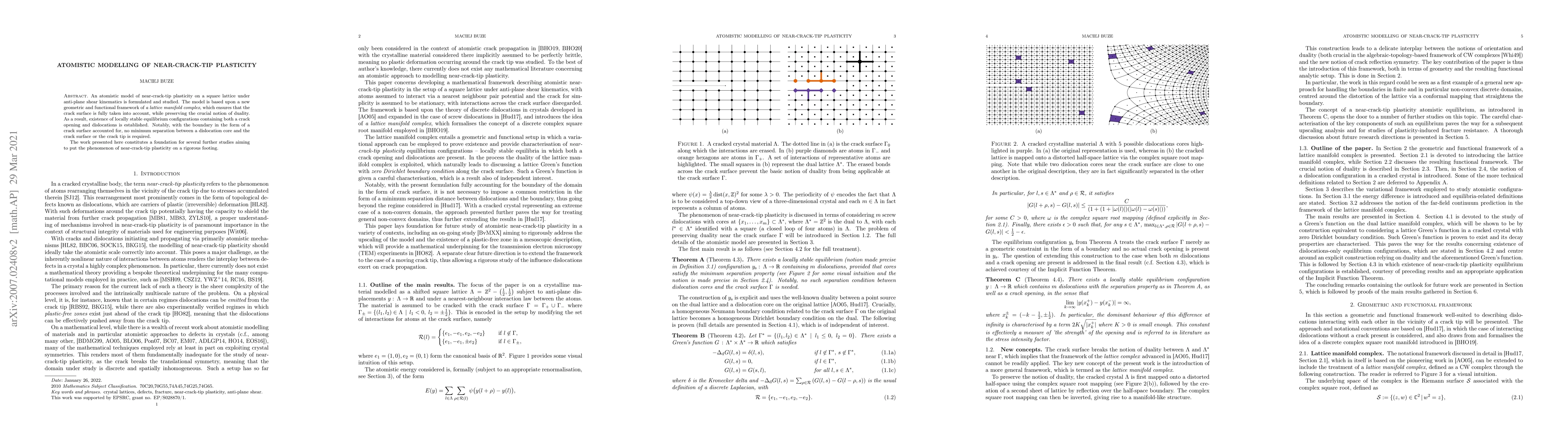 Researchers develop an atomistic model to study plasticity near crack tips in materials science, finding that dislocations can exist alongside cracks without minimum separation requirements.