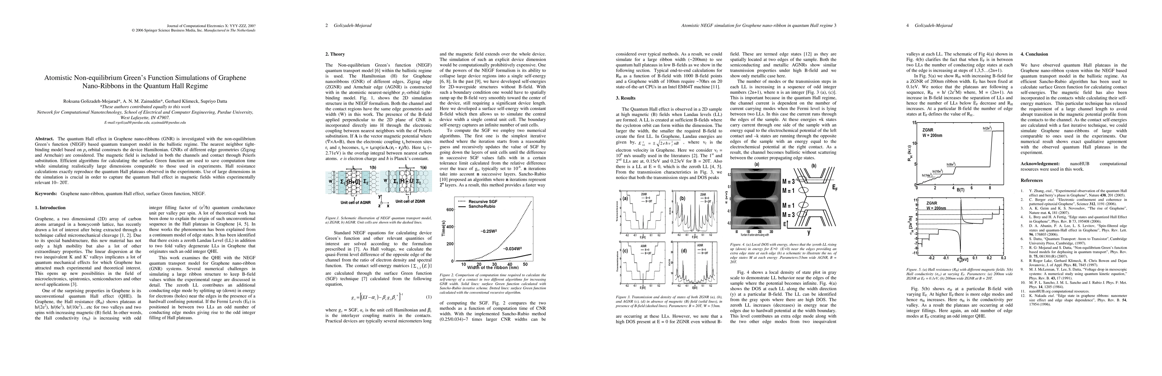 This paper investigates the quantum Hall effect in Graphene nano-ribbons (GNR) using non-equilibrium Green's function simulations, focusing on different edge geometries. Simulations accurately reproduce experimental quantum Hall plateaus, emphasizing the importance of large dimensions for capturing the effect under relevant magnetic fields.