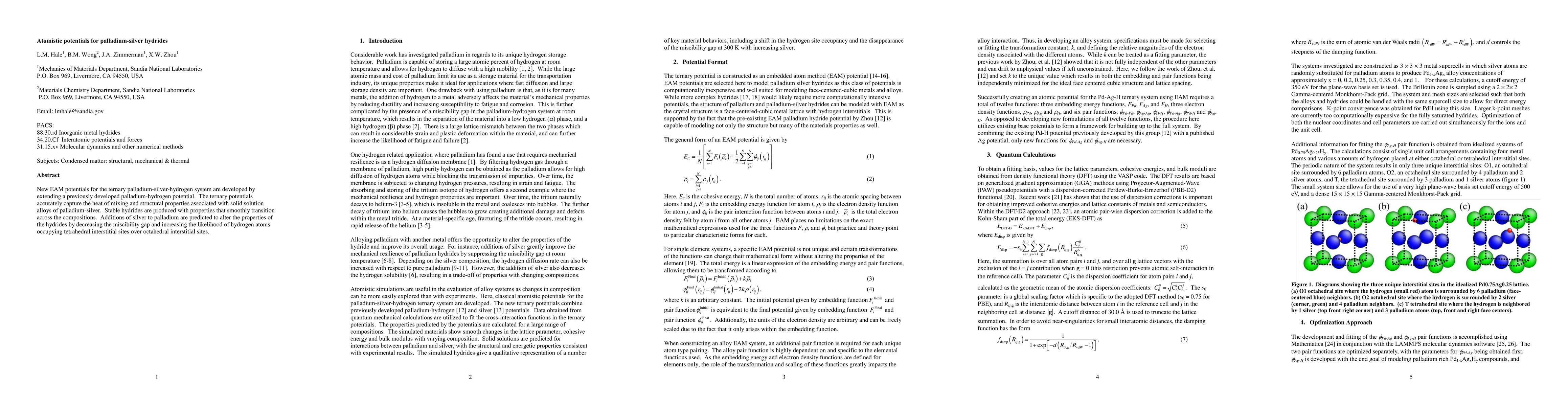 This paper develops new Embedded Atom Method (EAM) potentials for palladium-silver hydrides, accurately capturing the heat of mixing and structural properties. The potentials predict that adding silver to palladium decreases the miscibility gap and favors hydrogen occupying tetrahedral sites.