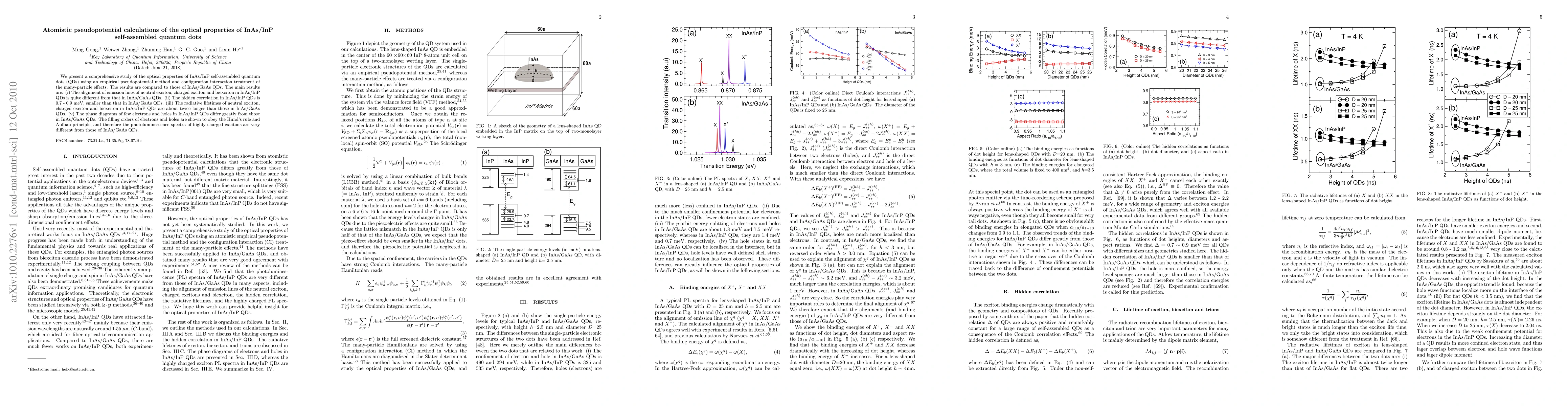 This study employs atomistic pseudopotential calculations to investigate the optical properties of InAs/InP self-assembled quantum dots, revealing distinct emission line alignments, reduced hidden correlations, and longer radiative lifetimes compared to InAs/GaAs quantum dots, attributed to differences in phase diagrams and electron-hole filling orders.