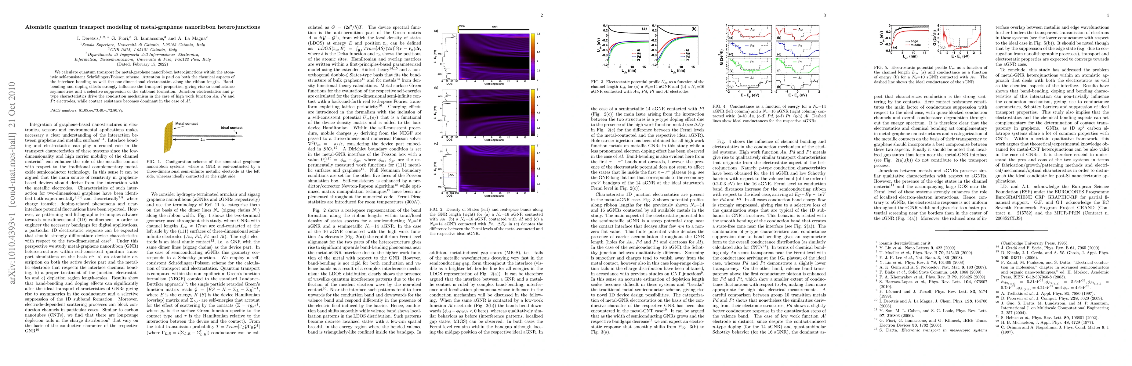 This paper investigates quantum transport in metal-graphene nanoribbon heterojunctions using an atomistic self-consistent Schrödinger/Poisson model, highlighting the impact of interface bonding and one-dimensional electrostatics on conductance asymmetries and subband formation. Different metal electrodes exhibit varying conduction mechanisms influenced by junction electrostatics and contact resistance.