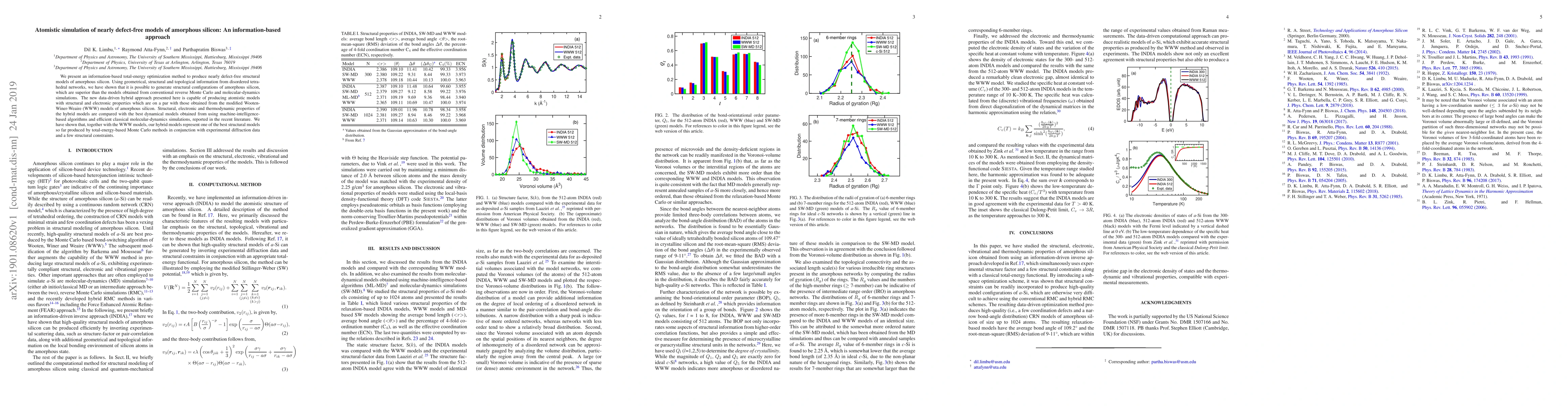 This paper presents an information-based total-energy optimization method for generating nearly defect-free models of amorphous silicon, showing superior structural configurations compared to conventional methods. The hybrid approach produces models with properties comparable to the best dynamical models, representing one of the top structural models from total-energy-based Monte Carlo methods.