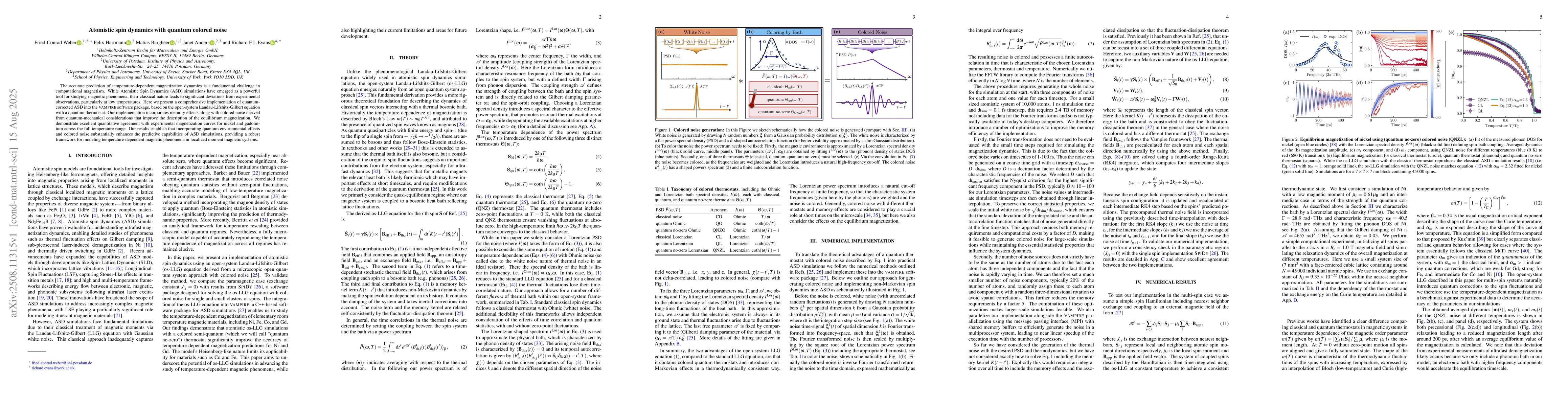 The accurate prediction of temperature-dependent magnetization dynamics is a fundamental challenge in computational magnetism. While Atomistic Spin Dynamics (ASD) simulations have emerged as a powerful tool for studying magnetic phenomena, their classical nature leads to significant deviations from experimental observations, particularly at low temperatures. Here we present a comprehensive implementation of quantum-corrected ASD into the Vampire software package, based on the open-system Landau-Lifshitz-Gilbert equation with a quantum thermostat. Our implementation incorporates memory effects along with colored noise derived from quantum-mechanical considerations that improve the description of the equilibrium magnetization. We demonstrate excellent quantitative agreement with experimental magnetization curves for nickel and gadolinium across the full temperature range. Our results establish that incorporating quantum environmental effects and colored noise substantially enhances the predictive capabilities of ASD simulations, providing a robust framework for modeling temperature-dependent magnetic phenomena in localized moment magnetic systems.