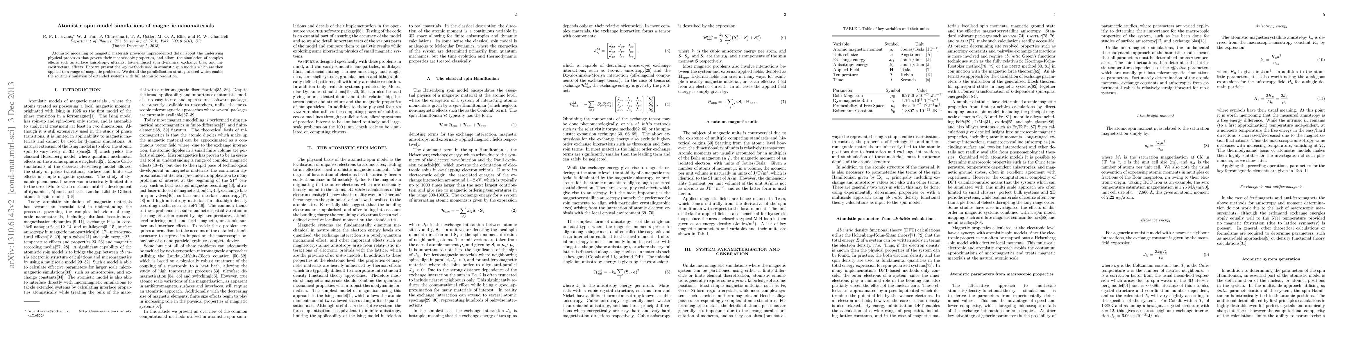 This paper outlines methods for atomistic spin model simulations of magnetic nanomaterials, focusing on complex phenomena like surface anisotropy and ultrafast spin dynamics. It also details parallelization strategies that facilitate the simulation of large systems at full atomic resolution.