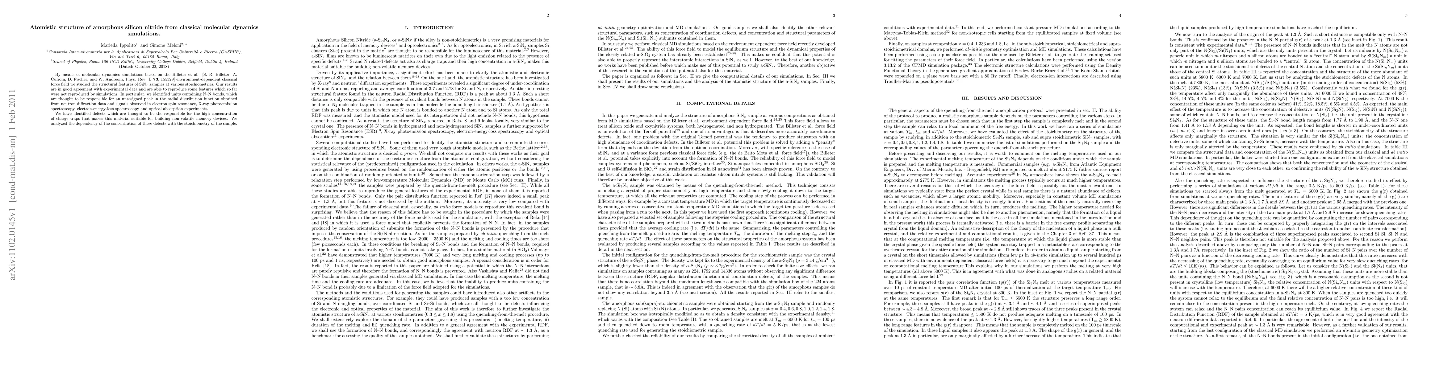 Researchers used molecular dynamics simulations to study the structure of amorphous silicon nitride, revealing units with N--N bonds and defects responsible for charge traps, making it suitable for non-volatile memory devices.