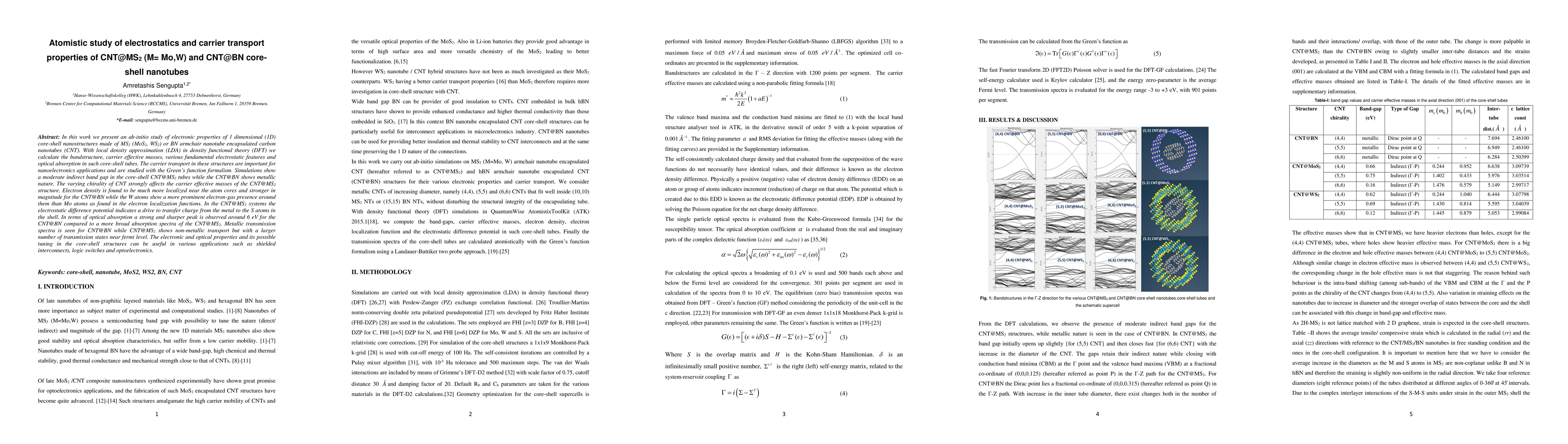 This paper presents an ab-initio study of electronic properties of CNT@MS2 and CNT@BN core-shell nanotubes, revealing a moderate indirect band gap in CNT@MS2 and metallic nature in CNT@BN, with significant implications for nanoelectronics and optoelectronics applications.