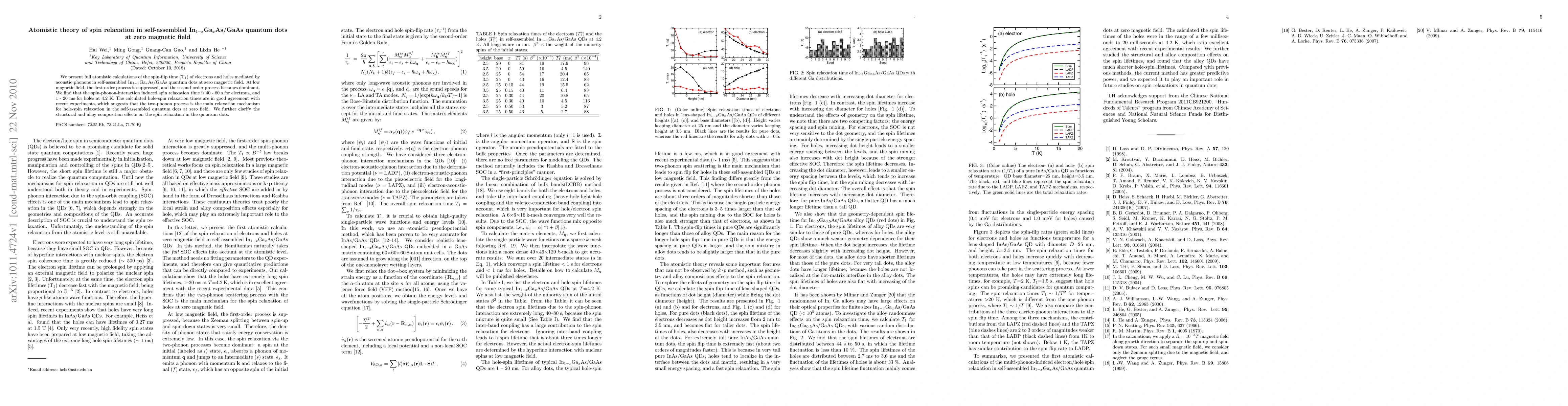 This paper reports atomistic calculations on spin relaxation in self-assembled In$_{1-x}$Ga$_x$As/GaAs quantum dots at zero magnetic field, showing that the dominant mechanism is the two-phonon process. The calculated spin-relaxation times for electrons range from 40 to 80 seconds, while for holes they range from 1 to 20 milliseconds at 4.2 K, aligning well with experimental data.