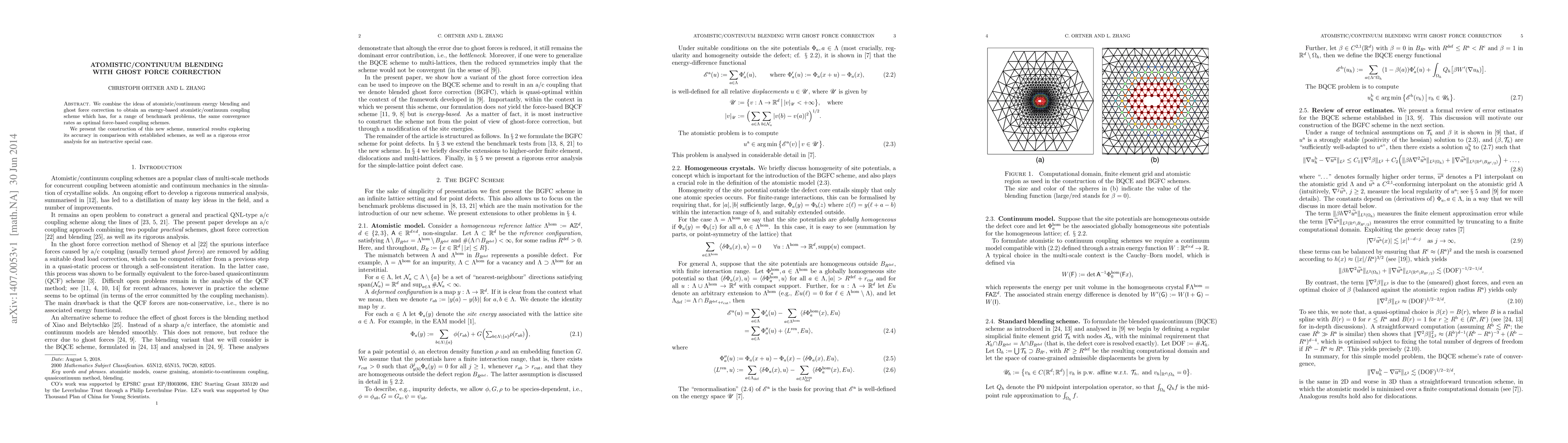 The paper presents an atomistic/continuum blending scheme with ghost force correction, combining energy-based blending and ghost force correction for optimal convergence rates.