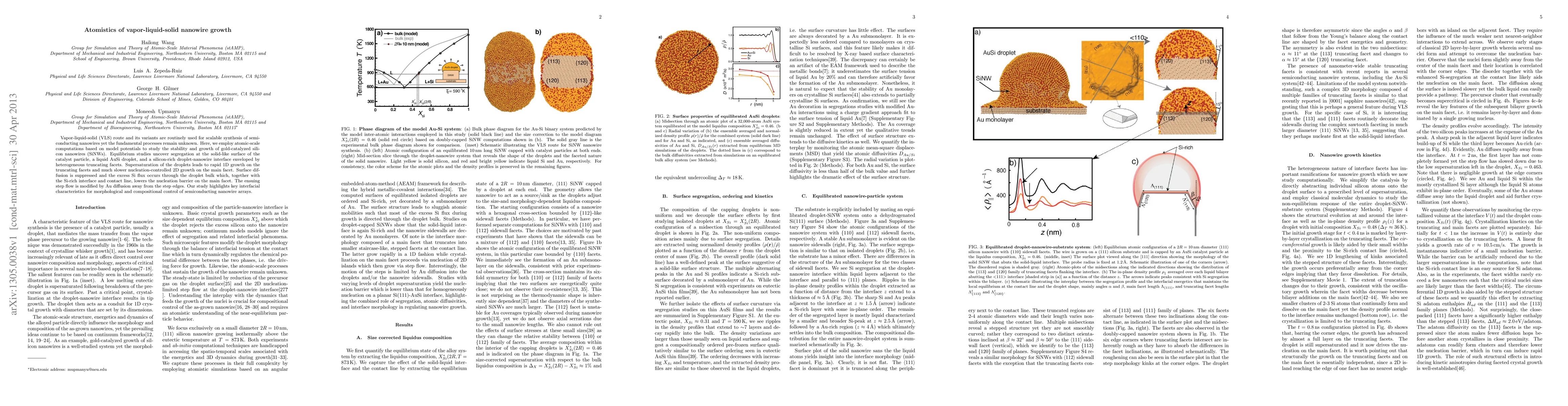 This paper uses atomic-scale computations to explore the growth mechanisms of gold-catalyzed silicon nanowires via the vapor-liquid-solid route, revealing segregation and rapid 1D growth driven by supersaturation, while highlighting the role of the Si-rich interface and contact line in lowering nucleation barriers.