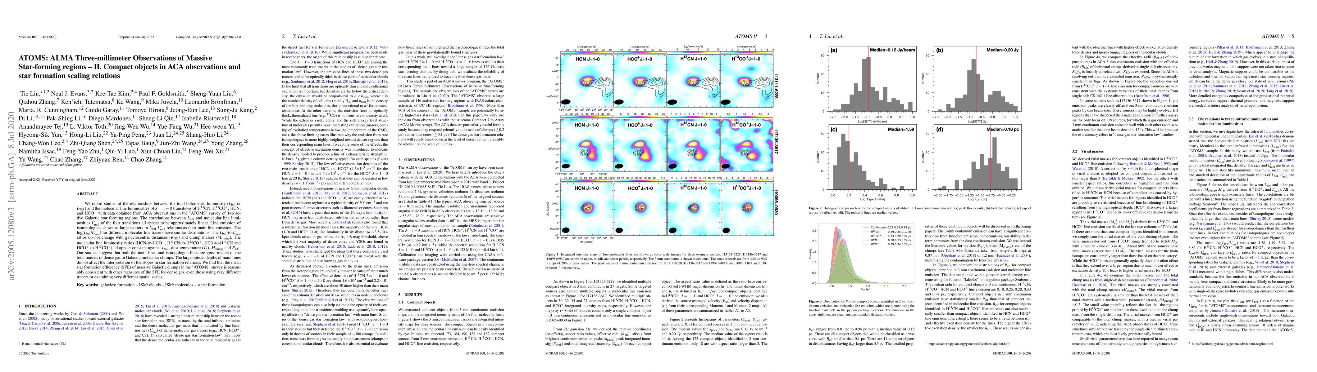 We report studies of the relationships between the total bolometric luminosity ($L_{\rm bol}$ or $L_{\rm TIR}$) and the molecular line luminosities of $J=1-0$ transitions of H$^{13}$CN, H$^{13}$CO$^+$, HCN, and HCO$^+$ with data obtained from ACA observations in the "ATOMS" survey of 146 active Galactic star forming regions. The correlations between $L_{\rm bol}$ and molecular line luminosities $L'_{\rm mol}$ of the four transitions all appear to be approximately linear. Line emission of isotopologues shows as large scatters in $L_{\rm bol}$-$L'_{\rm mol}$ relations as their main line emission. The log($L_{\rm bol}$/$L'_{\rm mol}$) for different molecular line tracers have similar distributions. The $L_{\rm bol}$-to-$L'_{\rm mol}$ ratios do not change with galactocentric distances ($R_{\rm GC}$) and clump masses ($M_{\rm clump}$). The molecular line luminosity ratios (HCN-to-HCO$^+$, H$^{13}$CN-to-H$^{13}$CO$^+$, HCN-to-H$^{13}$CN and HCO$^+$-to-H$^{13}$CO$^+$) all appear constant against $L_{\rm bol}$, dust temperature ($T_{\rm d}$), $M_{\rm clump}$ and $R_{\rm GC}$. Our studies suggest that both the main lines and isotopologue lines are good tracers of the total masses of dense gas in Galactic molecular clumps. The large optical depths of main lines do not affect the interpretation of the slopes in star formation relations. We find that the mean star formation efficiency (SFE) of massive Galactic clumps in the "ATOMS" survey is reasonably consistent with other measures of the SFE for dense gas, even those using very different tracers or examining very different spatial scales.
