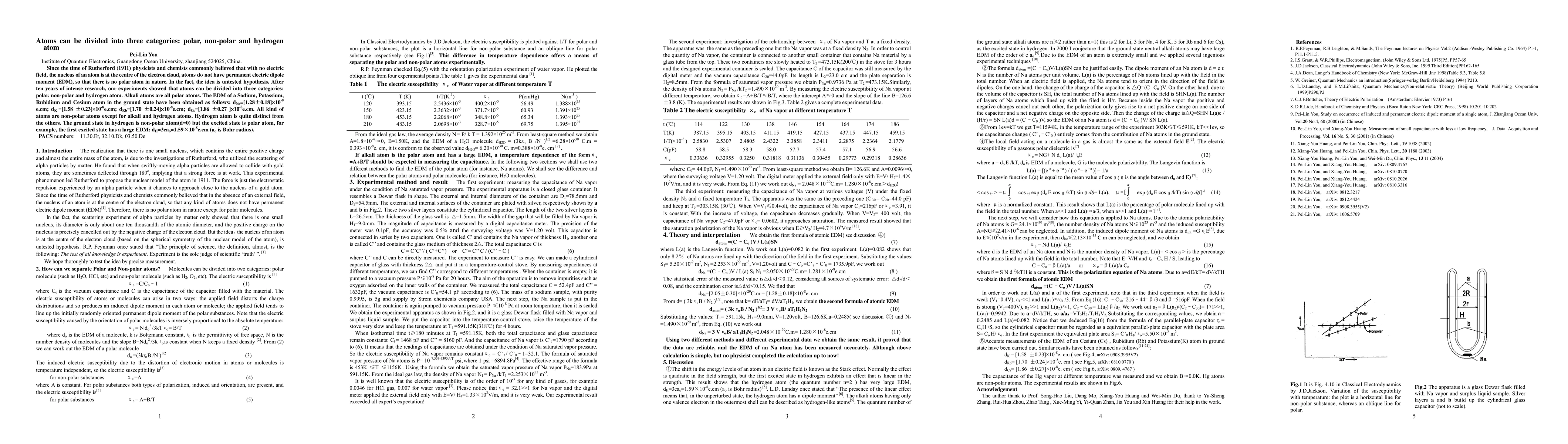 This research paper reveals that atoms can be categorized into polar, non-polar, and hydrogen atoms, challenging the long-held belief that atoms lack a permanent electric dipole moment. Alkali atoms (e.g., Na, K, Rb, Cs) are polar, while hydrogen atoms are non-polar in the ground state but become polar in excited states.