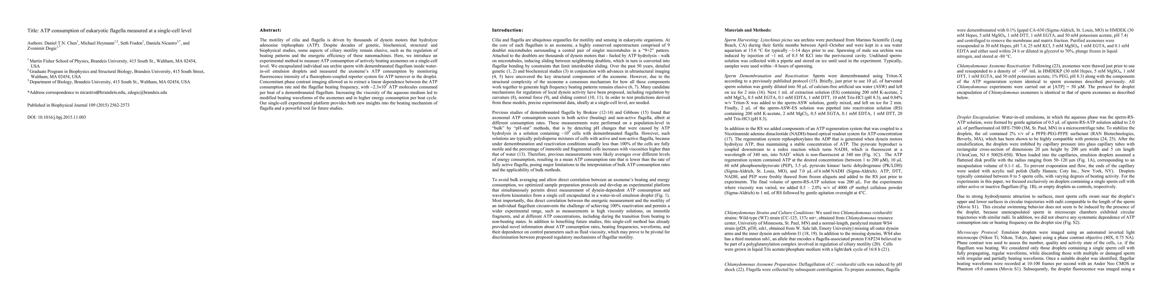 This paper introduces a novel method to measure ATP consumption in eukaryotic flagella at the single-cell level, revealing ~2.3e5 ATP molecules consumed per beat and showing increased energy use with higher medium viscosity. The study provides new insights into flagellar beating mechanisms and offers a powerful tool for future research.