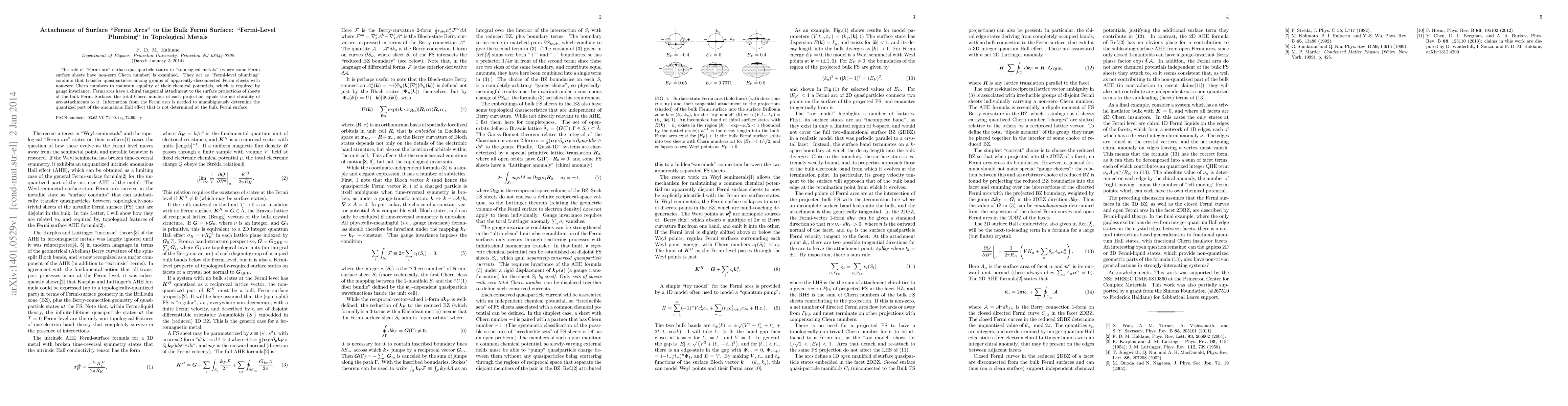 This paper explores how "Fermi arc" surface states in topological metals connect otherwise disconnected Fermi sheets with non-zero Chern numbers, ensuring equal chemical potentials via "Fermi-level plumbing." The chiral nature of these attachments reveals the quantized anomalous Hall effect component.