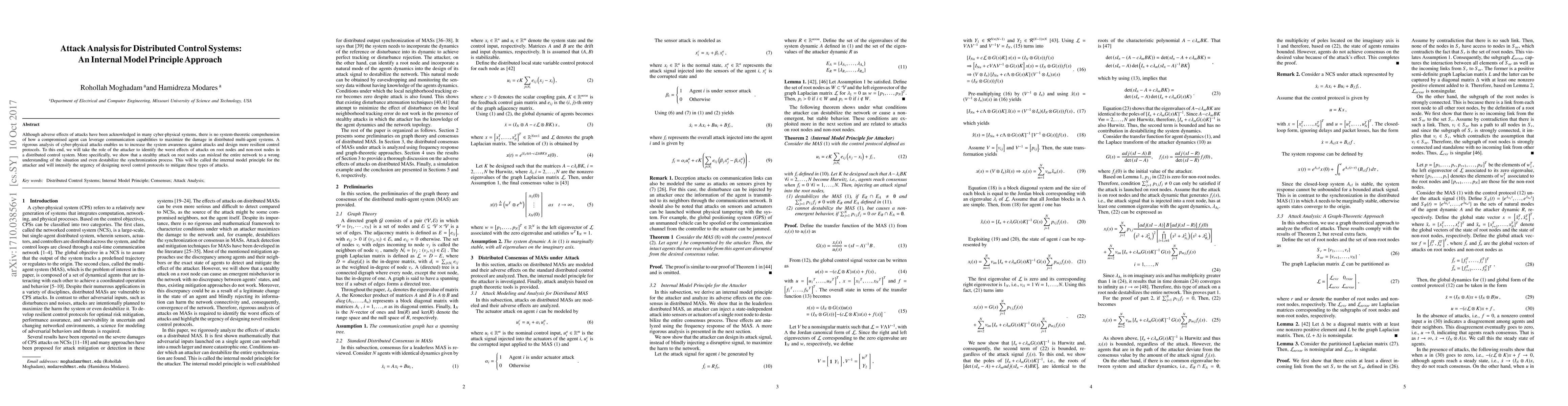Although adverse effects of attacks have been acknowledged in many cyber-physical systems, there is no system-theoretic comprehension of how a compromised agent can leverage communication capabilities to maximize the damage in distributed multi-agent systems. A rigorous analysis of cyber-physical attacks enables us to increase the system awareness against attacks and design more resilient control protocols. To this end, we will take the role of the attacker to identify the worst effects of attacks on root nodes and non-root nodes in a distributed control system. More specifically, we show that a stealthy attack on root nodes can mislead the entire network to a wrong understanding of the situation and even destabilize the synchronization process. This will be called the internal model principle for the attacker and will intensify the urgency of designing novel control protocols to mitigate these types of attacks.