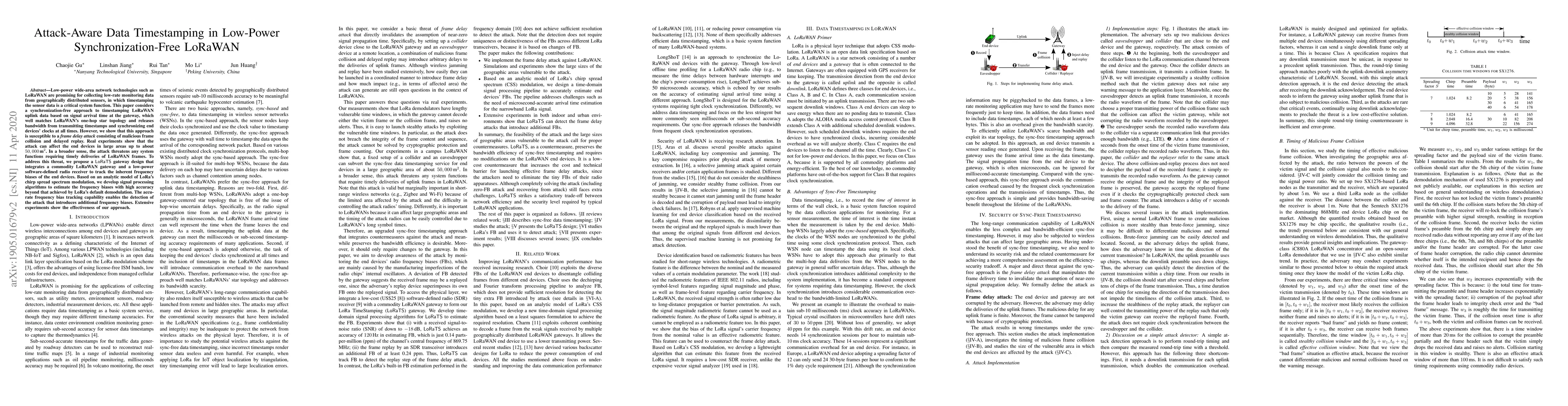 This paper proposes a synchronization-free approach for timestamping LoRaWAN uplink data based on signal arrival time, but identifies a frame delay attack vulnerability. To counter this, the authors introduce $\mathsf{LoRaTS}$, a design that uses a software-defined radio to accurately track end device frequency biases, enabling detection of the attack through additional frequency biases.