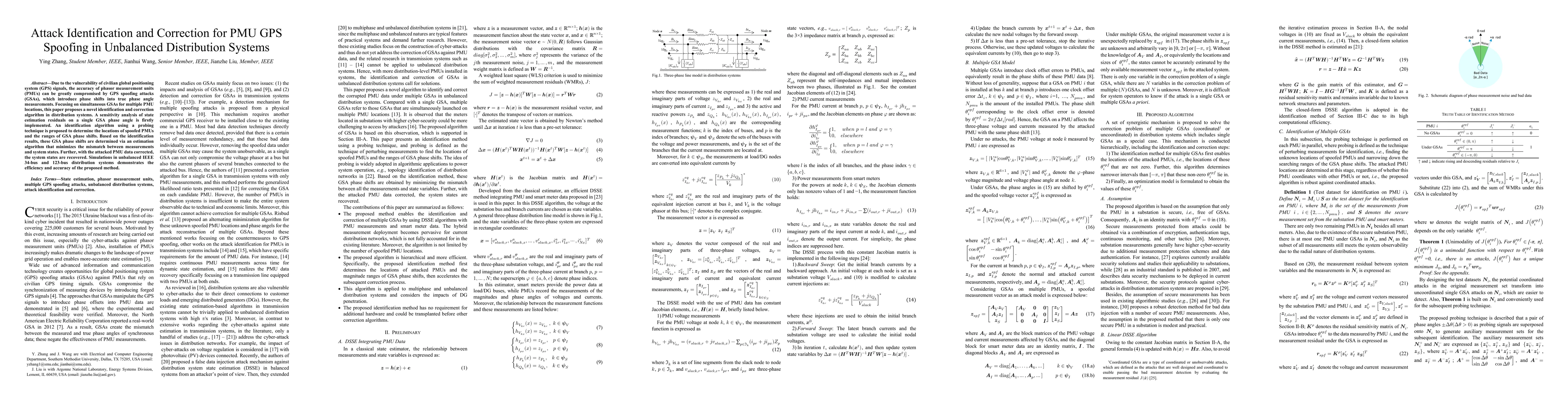 This paper proposes a novel algorithm for identifying and correcting GPS spoofing attacks on phasor measurement units in unbalanced distribution systems. The method involves a sensitivity analysis, an identification algorithm using probing, and a correction algorithm to minimize measurement-state mismatches, ultimately restoring system accuracy.
